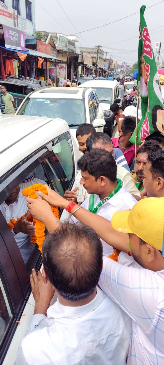 किसान और नौजवानों की आवाज बुलंद करता रहा है और आगे भी जनता की उम्मीदों पर खरा उतरेगा।कार्यक्रम में बड़ी संख्या में स्थानीय नेता और कार्यकर्ता मौजूद रहे। पूरे स्वागत समारोह के दौरान उत्साह और जोश का माहौल देखने को मिला। इस मौके पर राजद प्रखंड अध्यक्ष चंदन सिंह, पूर्व विधानसभा प्रत्याशी अविनाश मंगलम, युवा राजद जिला अध्यक्ष वसरुद्दीन उर्फ वशिर, सूरज देव, संजीव पासवान, कुंदन महतो, नयन मेहता इत्यादि कार्यकर्ता थे