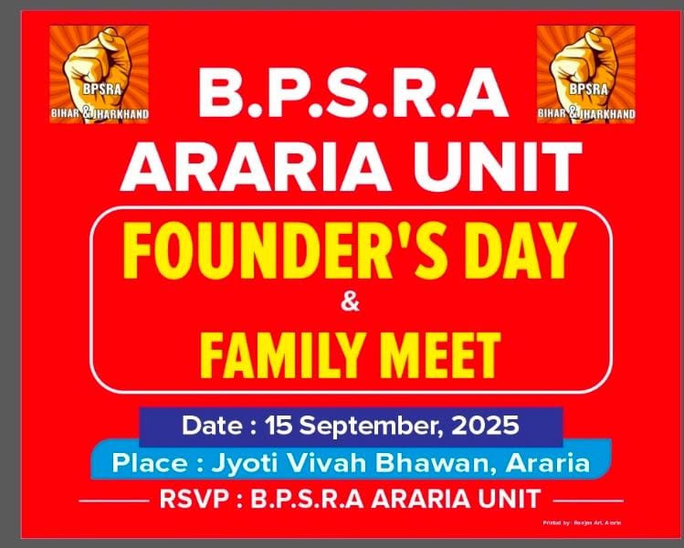 सोमवार, 15 सितंबर को बिहार प्रदेश सेल्स रिप्रेजेंटेटिव एसोसिएशन (बीपीएसआरए) अररिया यूनिट का स्थापना दिवस उत्साह और उल्लास के साथ मनाया गया। यह अवसर संगठन के इतिहास में खास रहा क्योंकि पहली बार स्थापना दिवस को प्रदेश स्तर पर भी मान्यता मिली। कार्यक्रम की अध्यक्षता यूनिट सचिव विकास कुमार ने की।