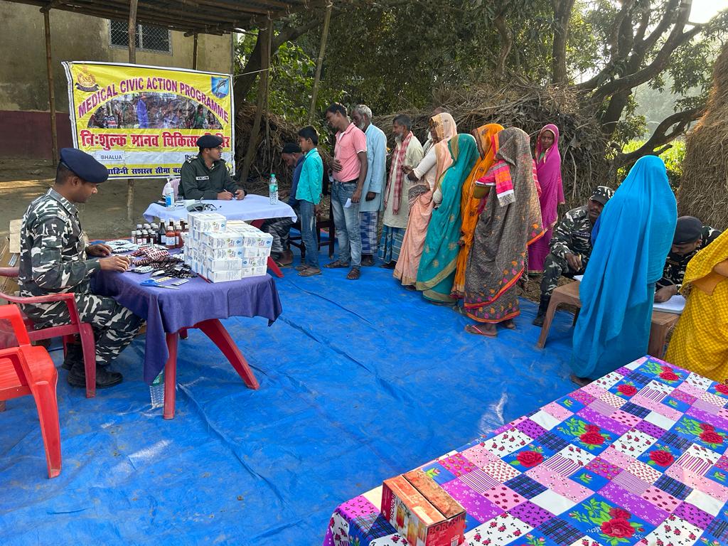 भारत सरकार के तत्वाधान व महेंद्र प्रताप कमांडेंट 52 वाहिनी सशस्त्र सीमा बल अररिया के निर्देशन में नागरिक कल्याण कार्यक्रम के अंतर्गत सीमा चौकी भलुआ स्थित गरैया वार्ड संख्या 05 में नि:शुल्क मानव चिकित्सा शिविर लगाया गया। जिसमें डॉक्टर मनोज जाट, चिकित्सा पदाधिकारी 52वी वाहिनी अररिया के द्वारा स्थानीय नागरिकों को जांच के उपरांत दवाइयां का वितरण किया गया। जिसमे कुल पुरुष-36, महिला-42 और बच्चे-08 कुल- 86 मरीजों का इलाज किया गया ।