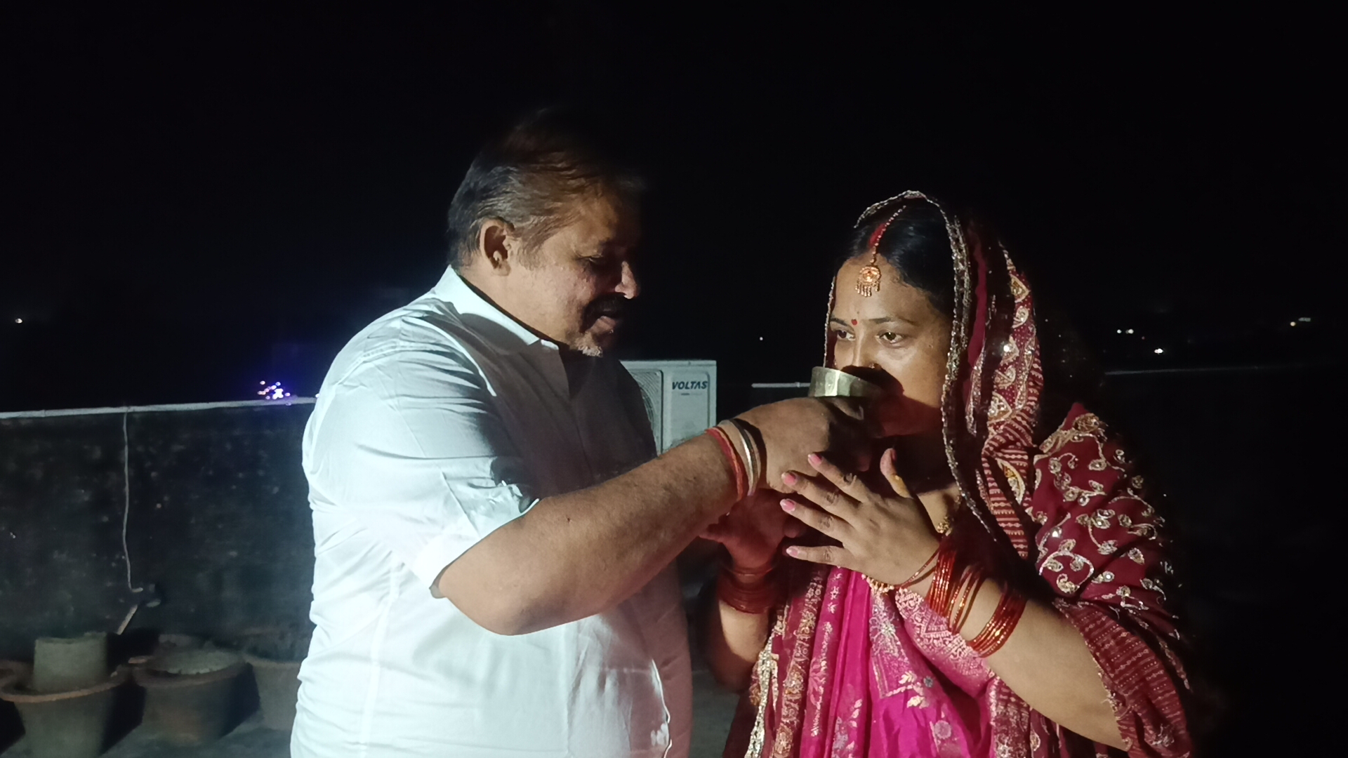 शाम ढलते ही आसमान में चांद की झलक पाकर महिलाओं ने मिट्टी के करवे में चावल, जौ और पानी रखकर चांद को अर्घ्य दिया। इसके बाद चलनी से चांद और पति का दर्शन कर आरती उतारी। पति-पत्नी ने एक-दूसरे की दीर्घायु और सुखमय जीवन की मंगल कामना की। पूरे अररिया जिले में करवाचौथ का यह त्योहार प्रेम, आस्था और समर्पण का सुंदर प्रतीक बन गया।