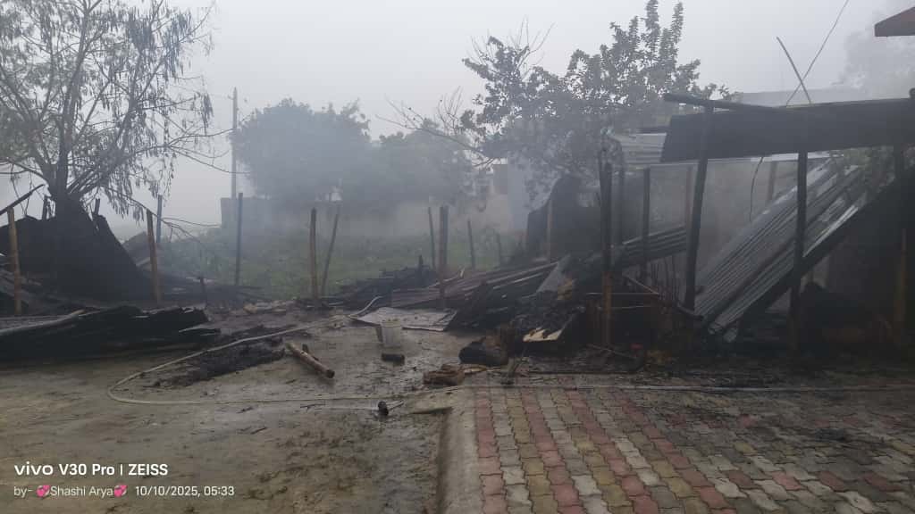 सिकटी (अररिया): प्रखंड क्षेत्र के आमगाछी पंचायत स्थित वार्ड संख्या 9, उफरैल चौक एसबीआई शाखा के समीप शुक्रवार की देर रात अचानक आग लगने से एक घर पूरी तरह जलकर राख हो गया। इस भीषण अग्निकांड में तीन गाय और एक बछड़ा की दर्दनाक मौत हो गई, जबकि घर में रखे कपड़े, अनाज, फर्नीचर और अन्य कीमती सामान जलकर नष्ट हो गए। अनुमानित रूप से दो लाख रुपये से अधिक की क्षति बताई जा रही है। गृहस्वामी दिनेश चौधरी ने बताया कि वह रात में परिवार सहित सोया हुआ था। अचानक गर्मी और जलने की गंध से जागने पर देखा कि पूरा घर आग की लपटों में घिरा हुआ है।