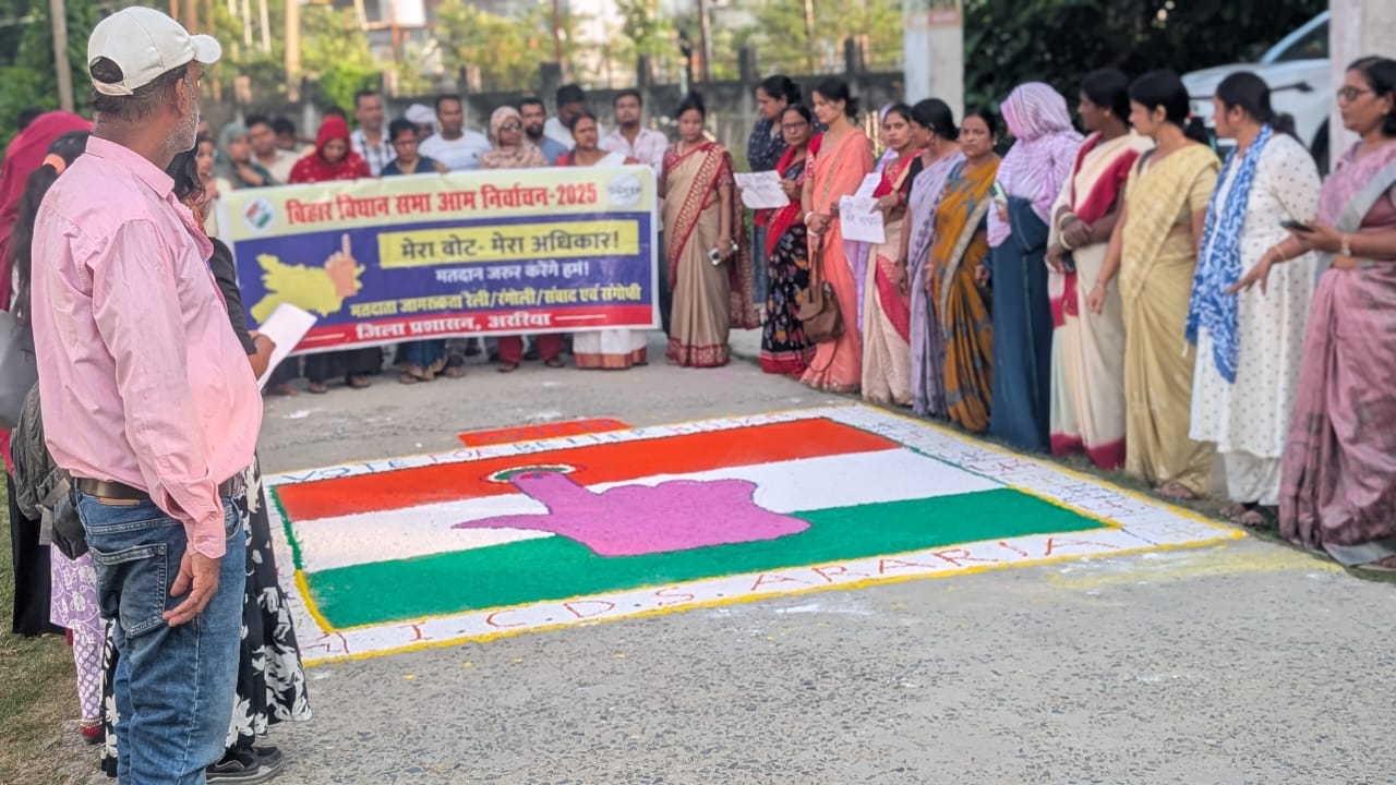 इसी क्रम में बाल विकास परियोजना कार्यालय, अररिया में भी मतदाता जागरूकता कार्यक्रम आयोजित हुआ, जिसमें मतदान शपथ, मानव श्रृंखला, और मतदाता जागरूकता रंगोली जैसी गतिविधियों के माध्यम से लोगों को लोकतंत्र के महापर्व में शामिल होने का आह्वान किया गया।