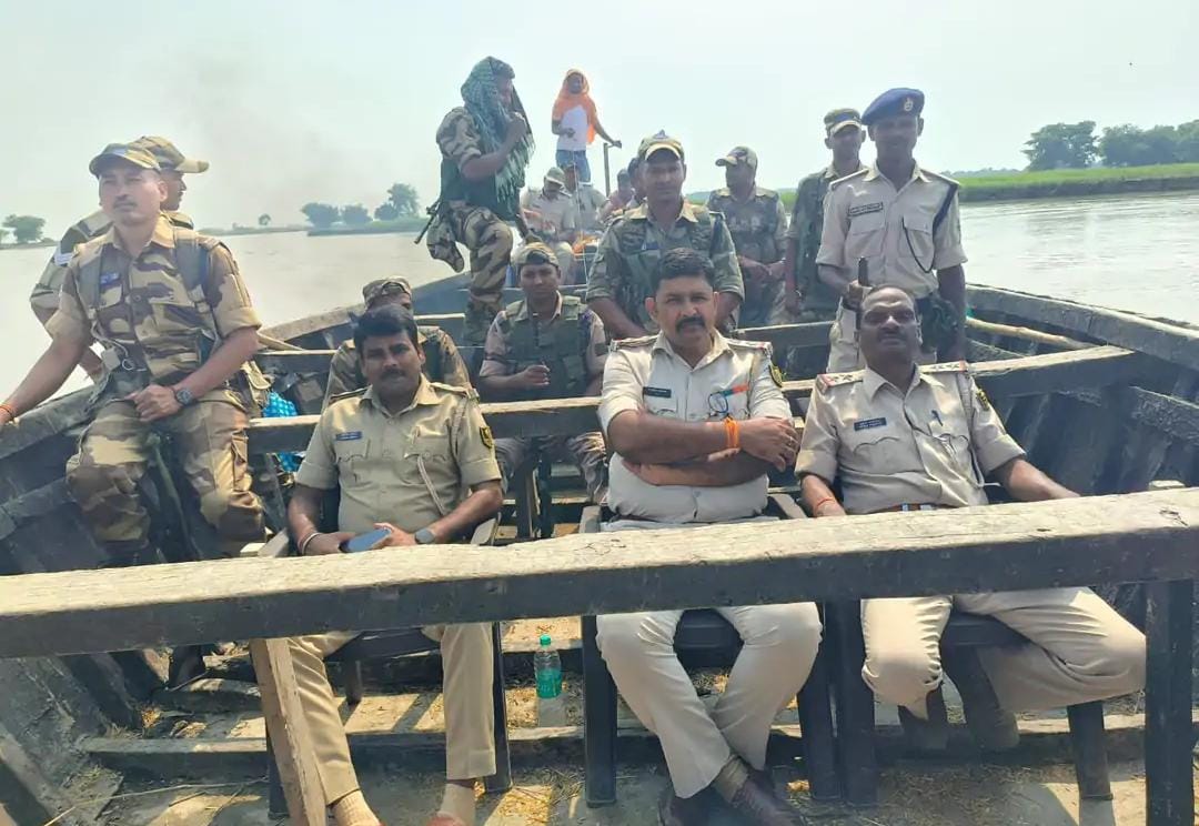 आगामी बिहार विधानसभा चुनाव को लेकर नदी थाना क्षेत्र में अपराधियों और असामाजिक तत्वों के खिलाफ पुलिस ने सख्त रुख अपनाना शुरू कर दिया है। शांतिपूर्ण और निष्पक्ष चुनाव संपन्न कराने की दिशा में रविवार को थाना अध्यक्ष सुनील कुमार के नेतृत्व में अर्द्धसैनिक बल (पैरा मिलिट्री फोर्स) के साथ संयुक्त रूप से व्यापक एरिया डोमिनेशन अभियान चलाया गया। अभियान के दौरान अर्द्धसैनिक बलों के जवानों ने मोटर चालित नाव से उजुआ, सिमरटोका, झाझा, कोदरा समेत कई सीमावर्ती गांवों का दौरा किया। इस दौरान ग्रामीणों से भयमुक्त होकर आगामी 6 अक्टूबर को मतदान में बढ़-चढ़कर भाग लेने की अपील की। साथ ही लोगों को असामाजिक तत्वों की गतिविधियों पर नजर रखने और किसी भी संदिग्ध सूचना को तुरंत थाना को देने की सलाह दी गई।