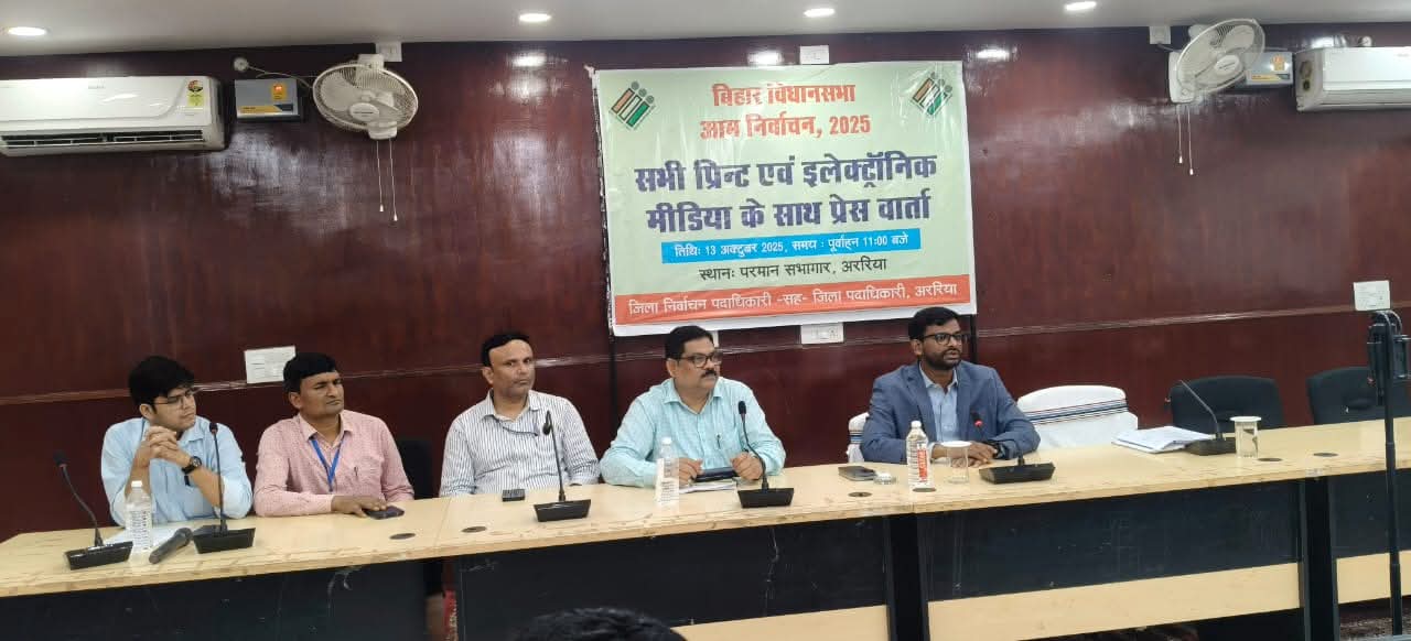 प्रेस कॉन्फ्रेंस को संबोधित करते हुए जिला निर्वाचन पदाधिकारी द्वारा बताया गया कि भारत निर्वाचन आयोग द्वारा बिहार विधान सभा आम निर्वाचन, 2025 का कार्यक्रम घोषित है, जिसके तहत राज्य में दो चरणों में मतदान होना है। आज 13 अक्टूबर, 2025 को द्वितीय चरण के लिए विधिवत् अधिसूचना जारी कर दी गयी है। इसी के साथ आज से ही नामांकन की प्रक्रिया संबंधित निर्वाची पदाधिकारी के कार्यालय में प्रारंभ है। जिले के सभी 06 विधानसभा के निर्वाची पदाधिकारी द्वारा नोटिस प्रकशित कर दिया है। उन्होंने कहा कि द्वितीय चरण में हमारे जिला अररिया की सभी सभी छः विधान सभा सीटों पर दिनांक-11.11.2025 (मंगलवार) को मतदान होना है।
