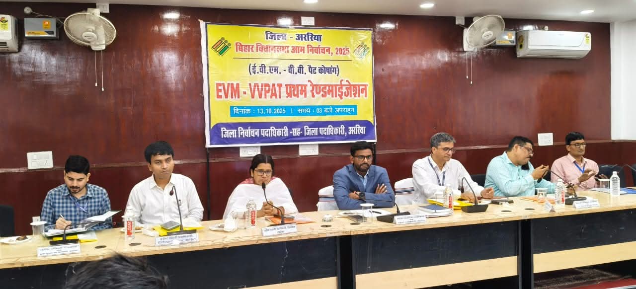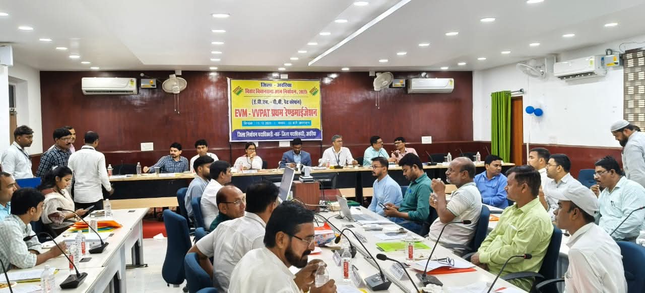बिहार विधानसभा आम निर्वाचन, 2025 के दौरान उपयोग की जाने वाली ई०वी०एम० एवं वी०वी०पैट का ‘प्रथम रैंडमाइजेशन अररिया जिला में दिनांक 13.10.2025 को अपराह्न 3 बजे एन०आई०सी०, अररिया समाहरणालय में 46-नरपतगंज विधानसभा क्षेत्र, 47-रानीगंज (अ०जा०) विधानसभा क्षेत्र, 48-फारबिसगंज विधानसभा क्षेत्र, 49-अररिया विधानसभा क्षेत्र, 50-जोकीहाट विधानसभा क्षेत्र एवं 51-सिकटी विधानसभा क्षेत्र के अनुसार की गई।