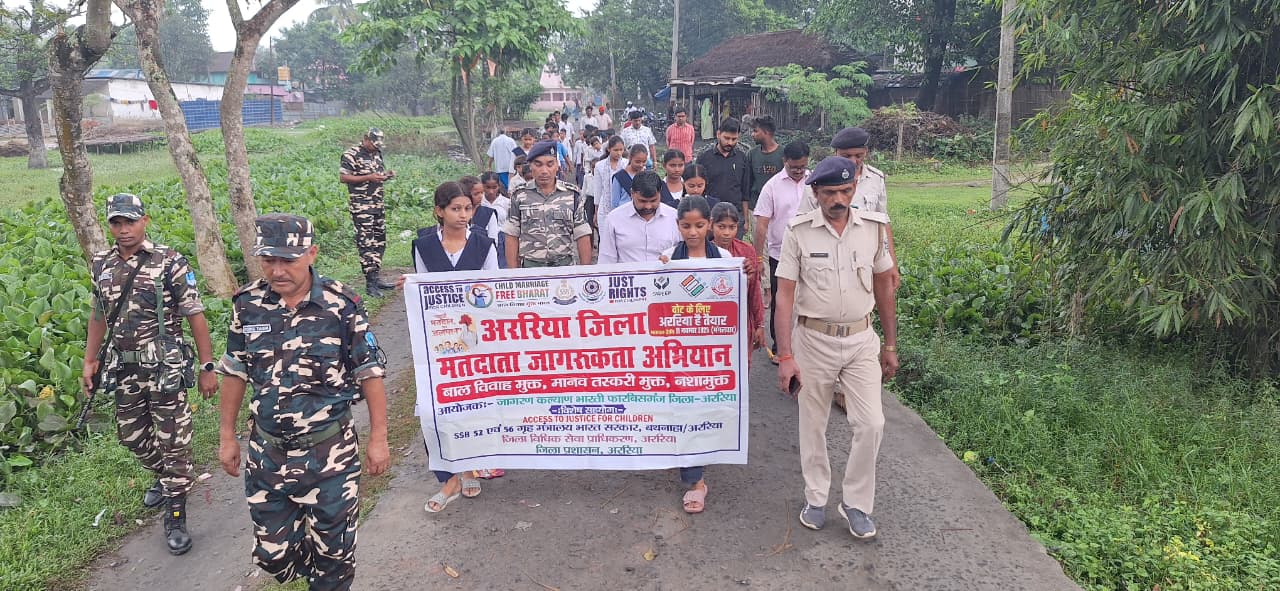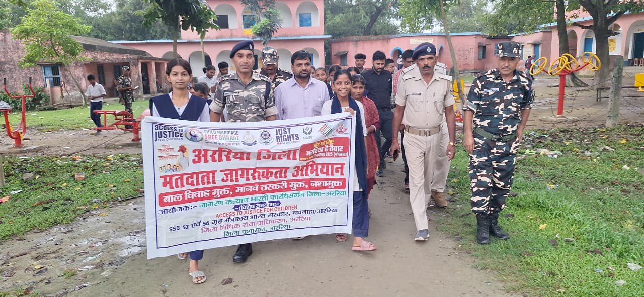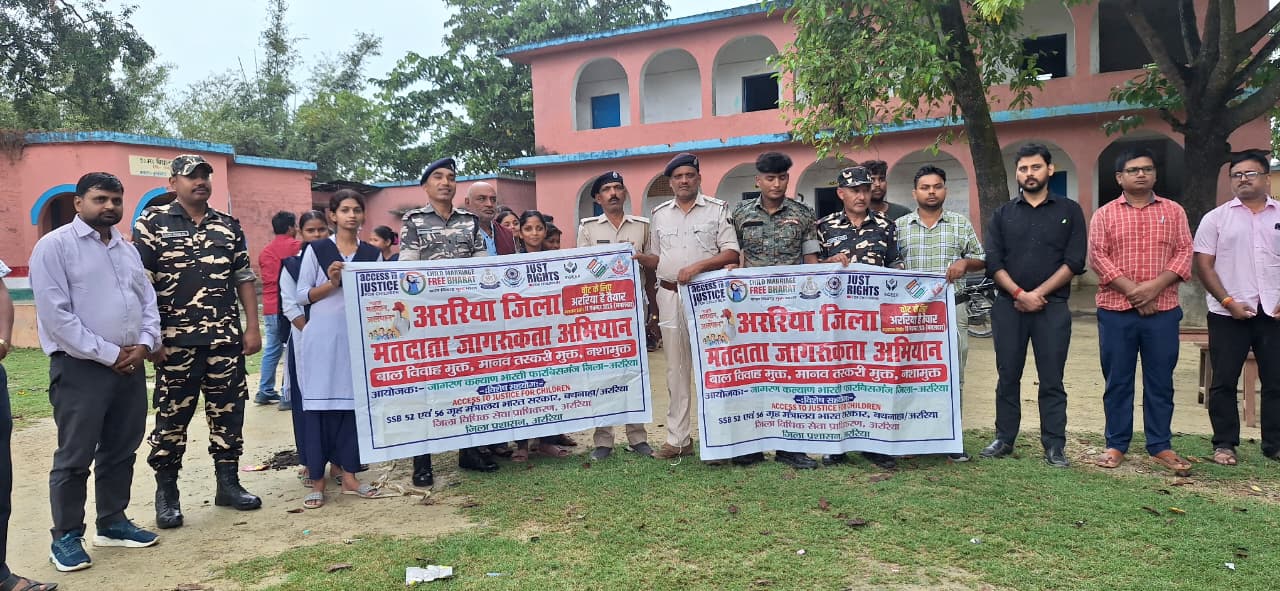 अररिया जिला के कुर्साकांटा प्रखंड के सोनामनी गोदाम स्थित उच्च माध्यमिक विद्यालय में गुरुवार को मतदाता जागरूकता अभियान एवं बाल विवाह मुक्त, मानव तस्करी मुक्त और नशामुक्त समाज निर्माण को लेकर एक व्यापक कार्यक्रम का आयोजन किया गया। कार्यक्रम का उद्देश्य आम लोगों विशेषकर युवा पीढ़ी में मतदान के प्रति जागरूकता लाना और समाज को विभिन्न सामाजिक बुराइयों से मुक्त करने का संदेश देना था।