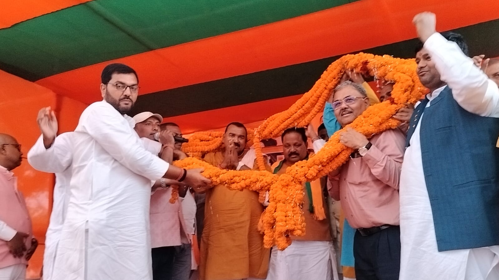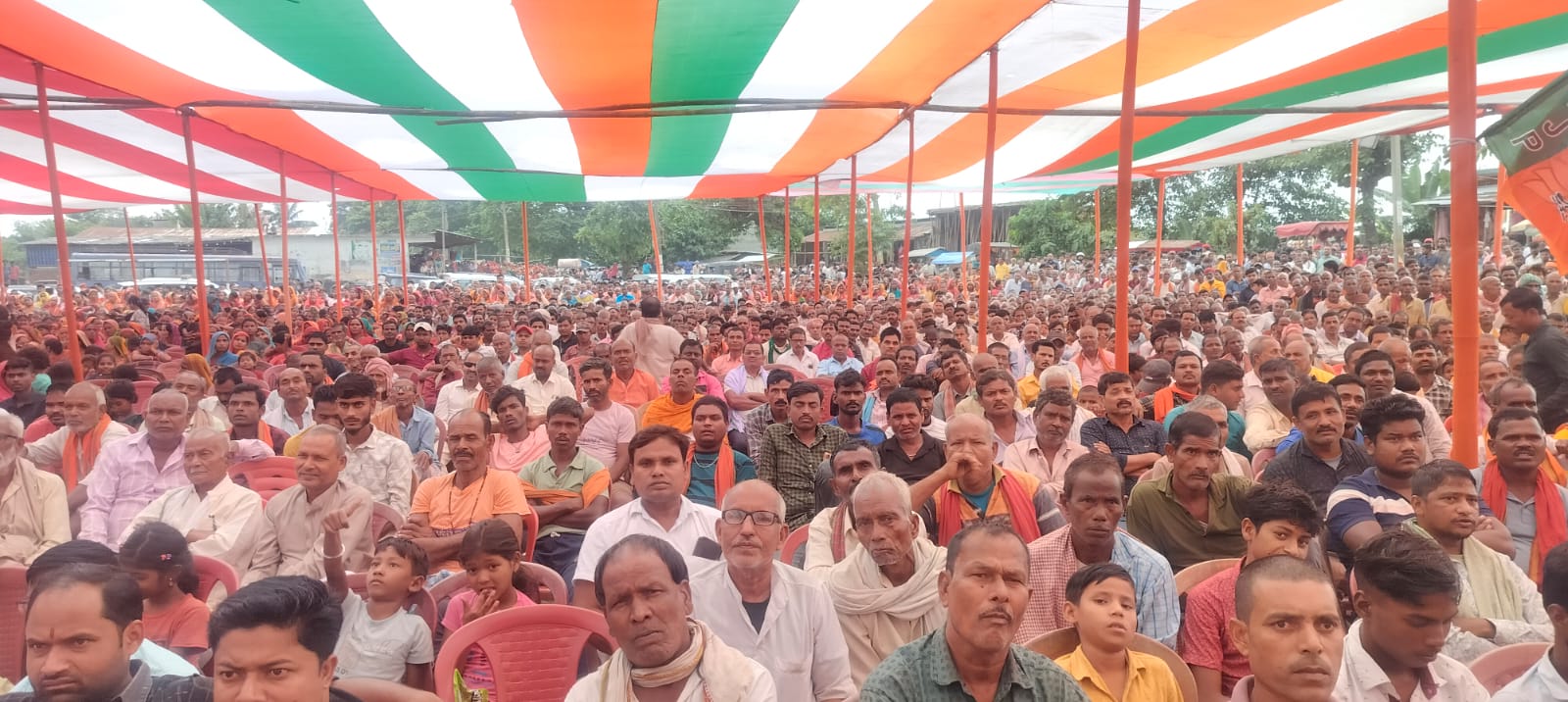 हालांकि पटना से आ रहे सांसद व गायक मनोज तिवारी खराब मौसम के कारण हेलीकॉप्टर से नहीं पहुंच सके, फिर भी कार्यकर्ताओं का उत्साह कम नहीं हुआ। पुरा मैदान फिर एक बार मोदी सरकार” के नारे गूंजते रहे।