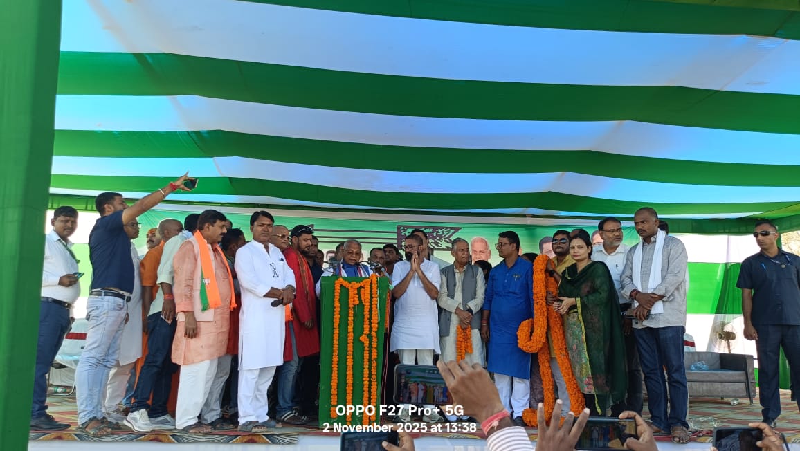 इसे वापस नहीं ली जाएगी। सर्वेक्षण करने पर ठीक ढ़ंग से रोजगार करने वाले महिलाओं को दो लाख रुपए और दिए जाएंगे। उन्होंने कहा कि प्रधानमंत्री नरेन्द्र मोदी का बिहार पर विशेष ध्यान रहता है। प्रधानमंत्री जो कहते हैं। उससे चार गुना अधिक बिहार को सहायता करते हैं। मांझी ने कहा कि पीएम विश्वकर्मा योजना के माध्यम से भी लोगों को रोजगार मिल रहा है,और बिहार में विकास की रफ्तार डबल इंजन सरकार से और तेज हुई है। उन्होंने तीर के निशान पर बटन दबाकर एनडीए समर्थित जदयू प्रत्याशी अतिरेक कुमार को भारी मतों से जीताएं ताकि विकास का काम रुके नहीं। केंद्रीय मंत्री रामनाथ ठाकुर ने भी सभा को संबोधित करते हुए कहा कि कुशेश्वरस्थान की जनता ने पहले भी जदयू को जीताकर विधानसभा भेजा था। इस बार भी जनता उसी तरह जदयू प्रत्याशी अतिरेक कुमार को विधायक बनाने की अपील किया। सभा को संबंधित करते हुए पूर्व केंद्रीय मंत्री व सांसद राजीव प्रताप रूडी ने कहा कि नीतीश कुमार के नेतृत्व में बिहार में सड़क, स्वास्थ्य , शिक्षा,बिजली,किसानों और युवाओं के रोजगार के क्षेत्र में बड़े काम हुए हैं। उन्होंने दावा किया कि जनता का उत्साह और समर्थन देखकर यह साफ है कि एनडीए की जीत तय है और मुख्यमंत्री नीतीश कुमार के ही नेतृत्व फिर से बिहार में डबल इंजन की सरकार बनेगी। सभा के अंत में उपस्थित लोगों ने हाथ उठाकर अतिरेक कुमार को आशीर्वाद दिया। जनसभा में बड़ी संख्या में स्थानीय लोग,एनडीए कार्यकर्ता और समर्थक शामिल हुए। पूरे कार्यक्रम में उत्साह और जोश का माहौल देखने को मिला।