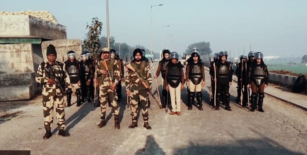 नेशनल हाईवे पर ट्रैक्टर आदि का आगमन अवरुद्ध कर दिया गया है। कानून व्यवस्था बनाए रखने के लिए ऐसा किया गया है।