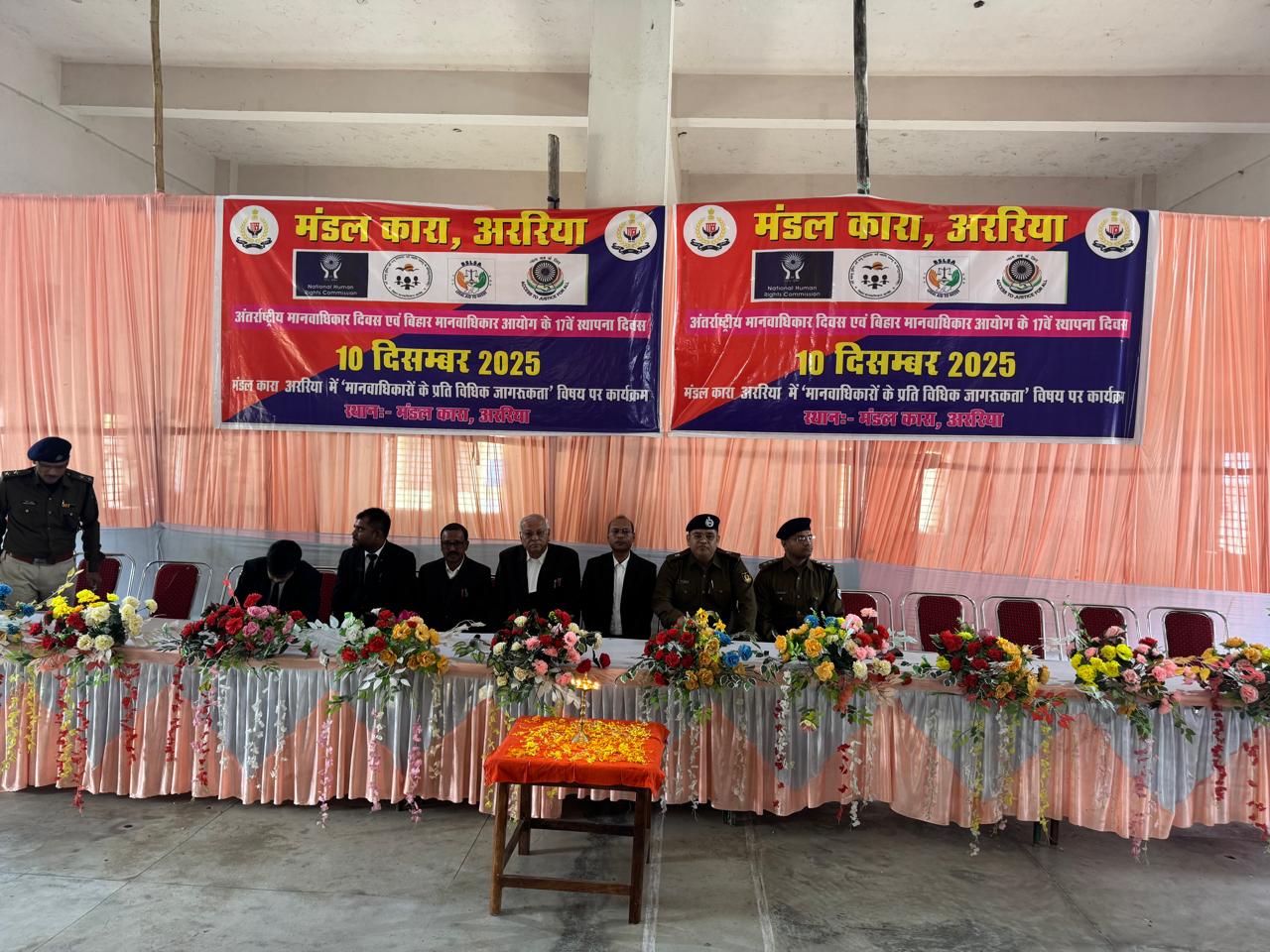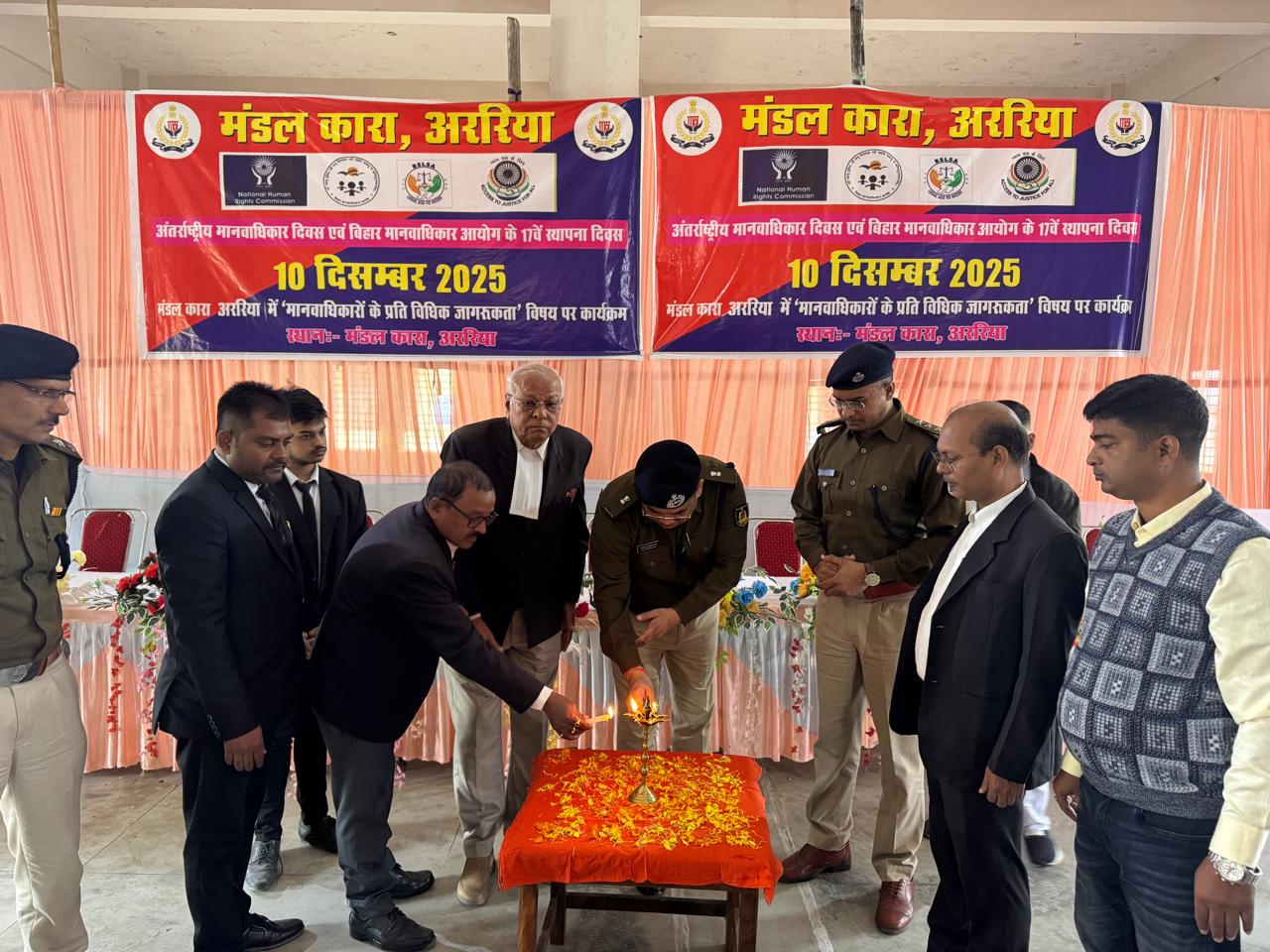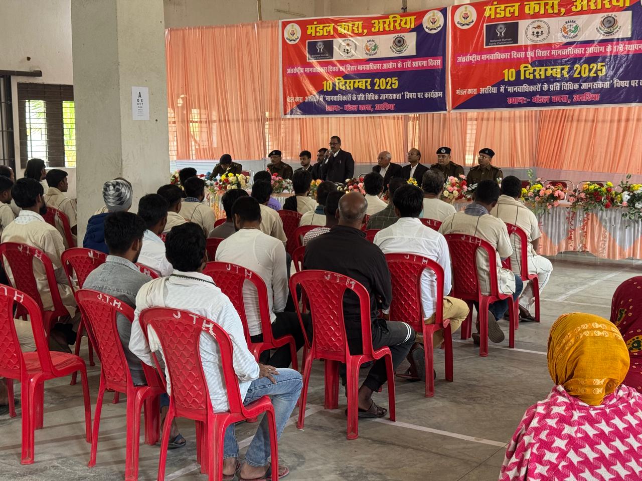 मंडल कारा अररिया में शुक्रवार को अंतरराष्ट्रीय मानवाधिकार दिवस के अवसर पर एक विशेष जागरूकता कार्यक्रम का आयोजन किया गया। इस कार्यक्रम में जेल प्रशासन, पुलिस विभाग तथा जिला विधिक सेवा प्राधिकरण (DLSA) के पदाधिकारियों ने संयुक्त रूप से भाग लिया। कार्यक्रम का उद्देश्य बंदियों में मानवाधिकारों के प्रति जागरूकता बढ़ाना, उन्हें विधिक अधिकारों से अवगत कराना तथा सुधार की दिशा में सकारात्मक प्रेरणा देना था।