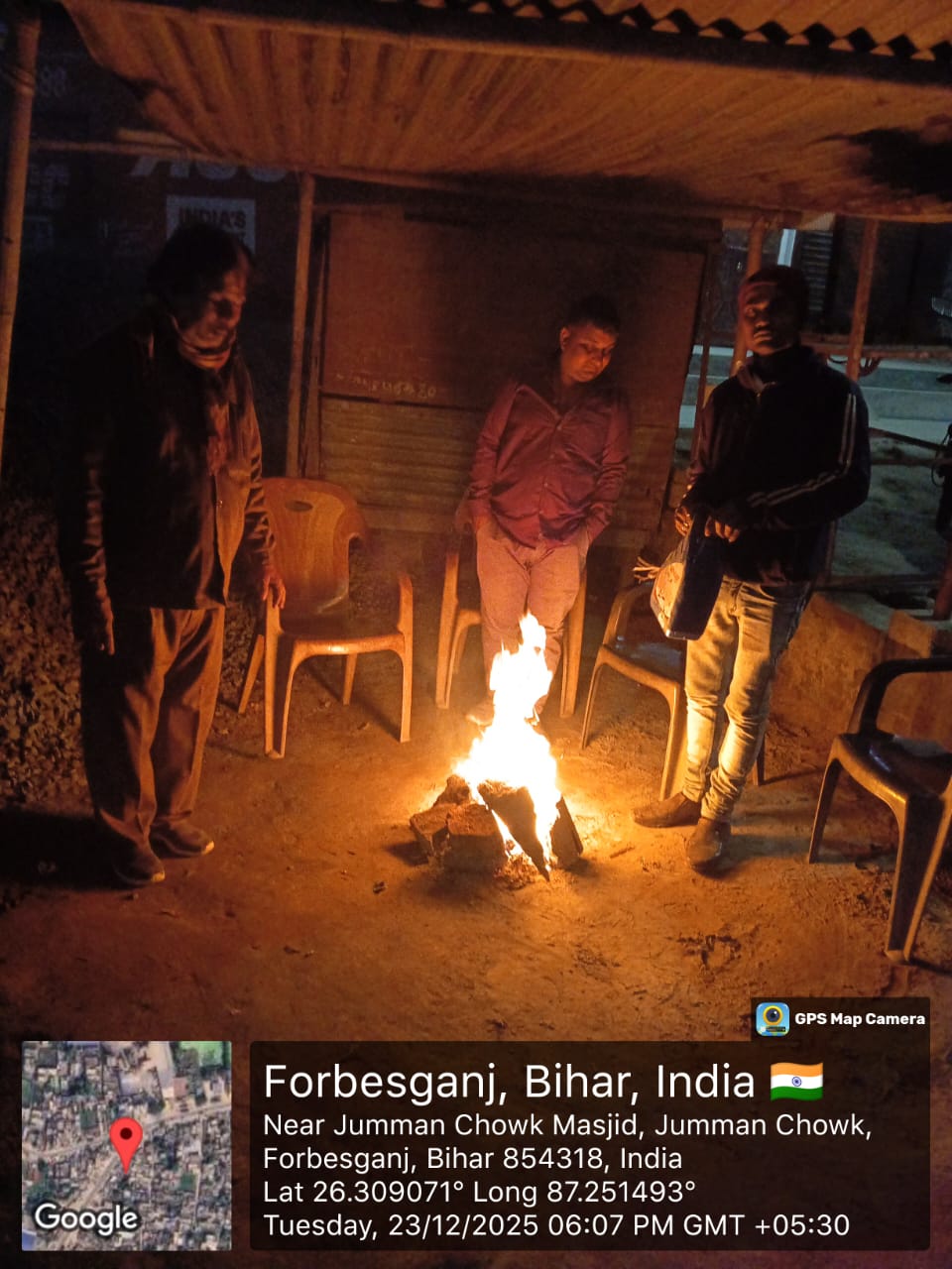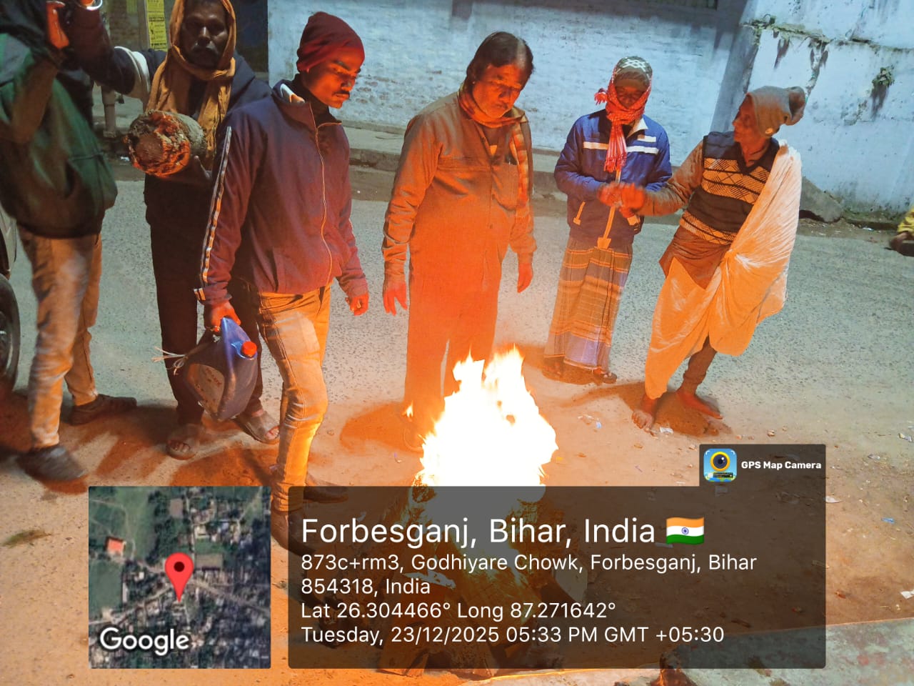 जिले में लगातार गिरते तापमान और शीतलहर के बढ़ते प्रकोप को देखते हुए जिला प्रशासन पूरी तरह सतर्क हो गया है। जिलाधिकारी अररिया श्री विनोद दूहन, भा.प्र.से. के निर्देशानुसार आमजन, विशेषकर गरीब, असहाय एवं बेसहारा लोगों को ठंड से राहत देने के उद्देश्य से जिले के सभी अंचलों में व्यापक स्तर पर अलाव एवं राहत व्यवस्था सुनिश्चित की गई है। यह पहल मानवीय दृष्टिकोण को ध्यान में रखते हुए की जा रही है, ताकि शीतलहर के दुष्प्रभाव से जनजीवन को सुरक्षित रखा जा सके।