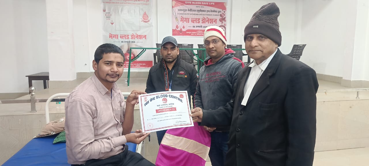 आयोजकों ने बताया कि शिविर में एकत्रित रक्त को सुरक्षित रूप से अररिया सदर अस्पताल के ब्लड बैंक में संरक्षित किया गया है, ताकि जरूरतमंद मरीजों को समय पर उपलब्ध कराया जा सके। कार्यक्रम को सफल बनाने में ब्लड बैंक सदर अस्पताल से आए कर्मियों—नितेश कुमार (काउंसलर), लैब टेक्नीशियन बादल कुमार, मोहम्मद इस्माइल, दीपू कुमार मिश्रा, सुधीर लाल कर्ण सहित अन्य सहयोगियों एवं स्वयंसेवकों की अहम भूमिका रही।
