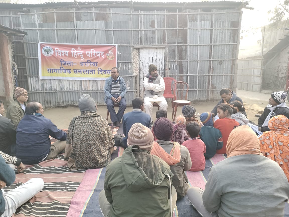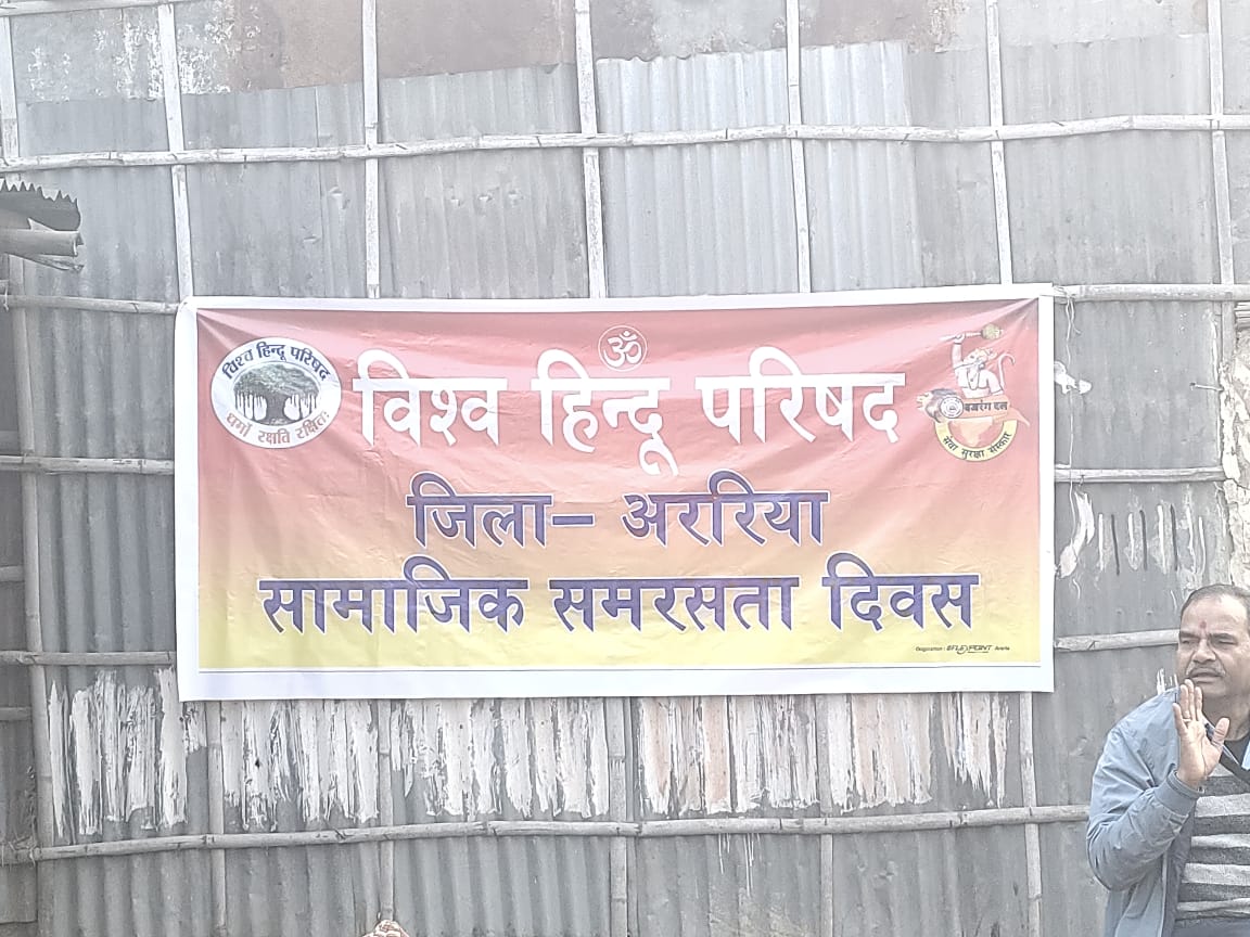विश्व हिंदू परिषद एवं बजरंग दल अररिया के संयुक्त तत्वावधान में शिवपुरी वार्ड संख्या–9 स्थित संत शिरोमणि रविदास कुटी परिसर में सामाजिक समरसता एवं खिचड़ी भोज कार्यक्रम का भव्य आयोजन किया गया। कार्यक्रम का मुख्य उद्देश्य समाज के सभी वर्गों के बीच आपसी भाईचारा, सौहार्द और सामाजिक एकता को मजबूत करना रहा।
