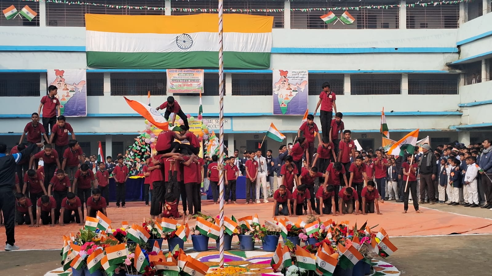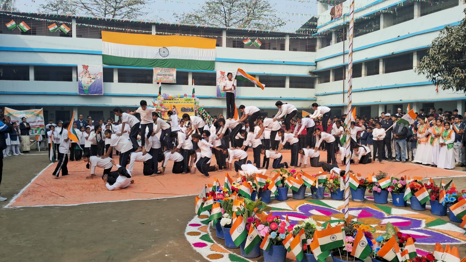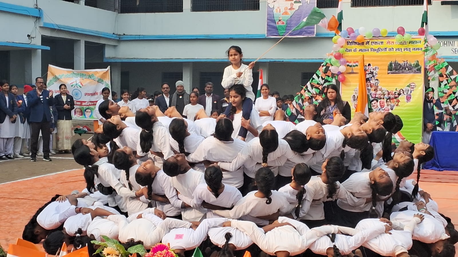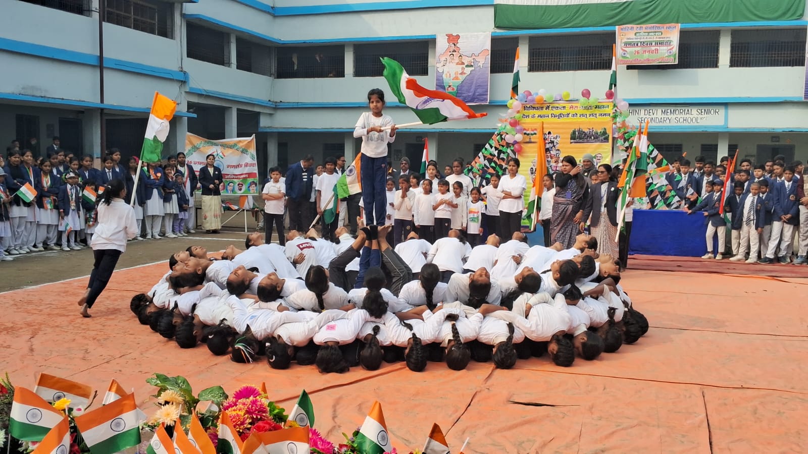 तत्पश्चात विद्यालय के छात्र छात्राओं ने रष्ट्रगीत, नृत्य व पिरामिड करतब दिखाये।