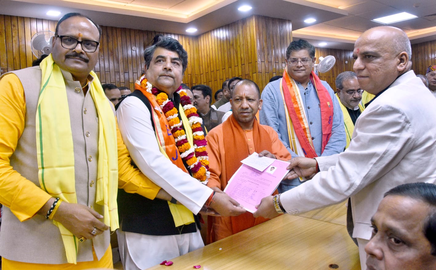 बसंत पंचमी के दिन बुधवार को उत्तर प्रदेश से भारतीय जनता पार्टी के सातों प्रत्याशियों ने राज्यसभा चुनाव के लिए नामांकन किया। मुख्यमंत्री योगी आदित्यनाथ, लोकसभा चुनाव प्रभारी बैजयंत पांडा की मौजूदगी में इन प्रत्याशियों ने पर्चा भरा। विधान भवन में राज्य सभा के बीजेपी प्रत्याशी भाजपा प्रवक्ता सुधांशु त्रिवेदी, आरपीएन सिंह, संगीता बलवंत, साधना सिंह, अमरपाल मौर्य, तेजवीर सिंह, नवीन जैन ने पर्चा दाखिल किया।