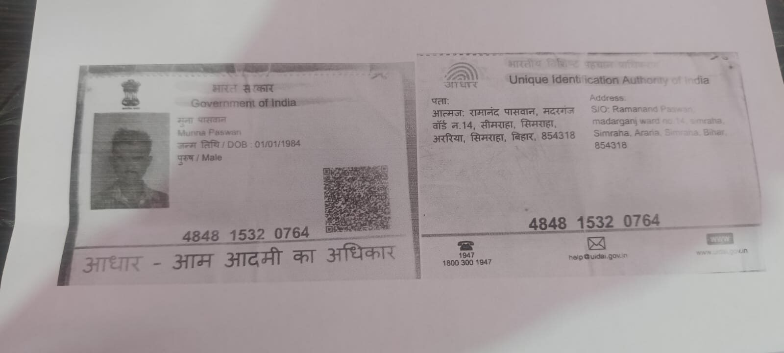फ़ोटो : मुन्ना पासवान (लापता ) किशनगंज मेडिकल कॉलेज से