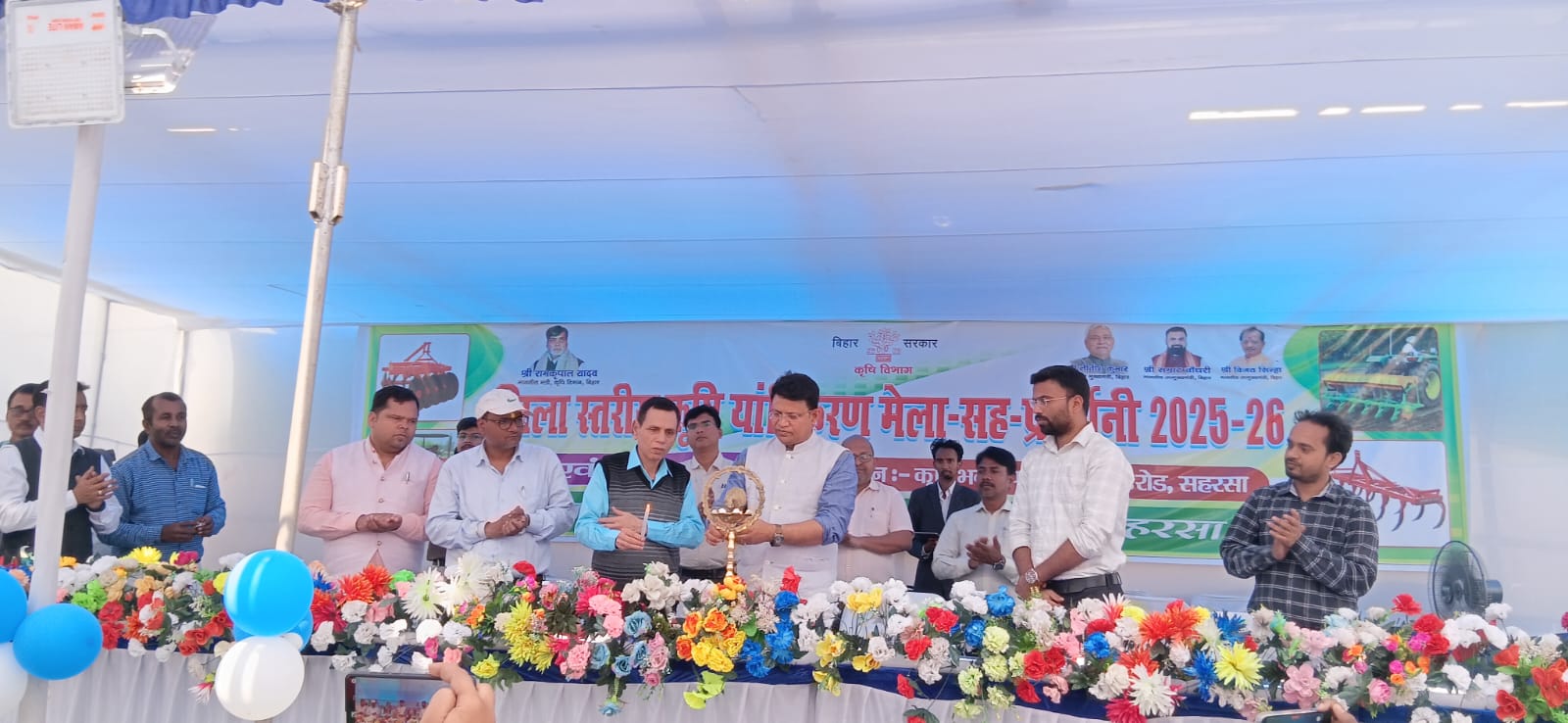 सहरसा। विकास कुमार। कृषि विभाग के प्रांगण में शुक्रवार को दो दिवसीय कृषि यांत्रीकरण मेला -सह- प्रदर्शनी 2025-26 दिनांक 27 एवं 28 फरवरी का शुभारंभ उत्साहपूर्ण माहौल में किया गया। कार्यक्रम का विधिवत उद्घाटन मुख्य अतिथि संयुक्त निदेशक (शस्य), सहरसा प्रमंडल ने संयुक्त रूप से दीप प्रज्वलित कर किया। उद्घाटन सत्र में जिले भर से आए सैकड़ों किसानों ने भाग लेकर कार्यक्रम को सफल एवं ऐतिहासिक बना दिया।उद्घाटन के अवसर पर उपस्थित अधिकारी जिला कृषि पदाधिकारी संजय कुमार सहरसा, उपनिदेशक कृषि अभियंत्रण सहरसा, जिला उद्यान पदाधिकारी, वैज्ञानिकगण, अनुमंडल कृषि पदाधिकारी सहरसा सदर एवं सिमरी बख्तियारपुर, जिला परामर्शी, विभिन्न प्रखंडों से आए प्रखंड कृषि पदाधिकारी,बीटीएम एटीएम, कृषि समन्वयक, किसान सलाहकार एवं कृषि विभाग के अन्य कर्मियों ने किसानों का उत्साहवर्धन किया तथा कृषि यांत्रिकरण की उपयोगिता पर प्रकाश डाला।कार्यक्रम का मुख्य आकर्षण रहा पंजीकृत कृषि यंत्र विक्रेताओं द्वारा प्रदर्शनी में लगाए गए उन्नत कृषि यंत्रों का प्रदर्शन।