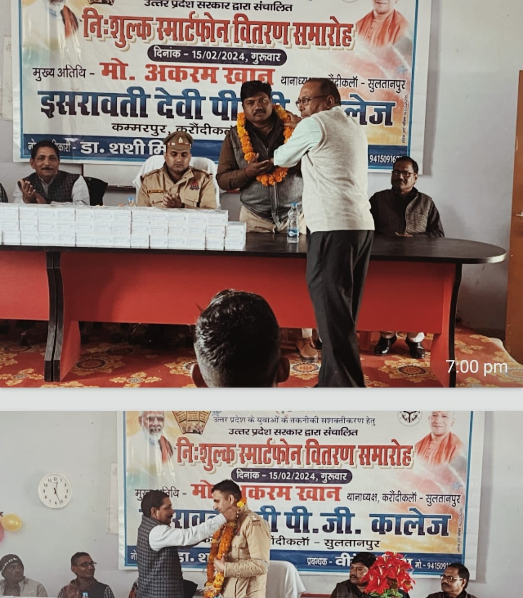 इस अवसर पर क्षेत्रीय थाना करौंदीकला के थानाध्यक्ष अकरम खान मुख्य अतिथि के रूप में उपस्थित होकर विद्यार्थियों का उत्साहवर्धन किया।मुख्य अतिथि के रूप में श्री अकरम खानजी ने लाभार्थी छात्र /छात्राओं को स्मार्टफोन वितरित किया और स्मार्टफोन के महत्व के बारे में अवगत कराते हुए, सोशल मीडिया से संबंधित