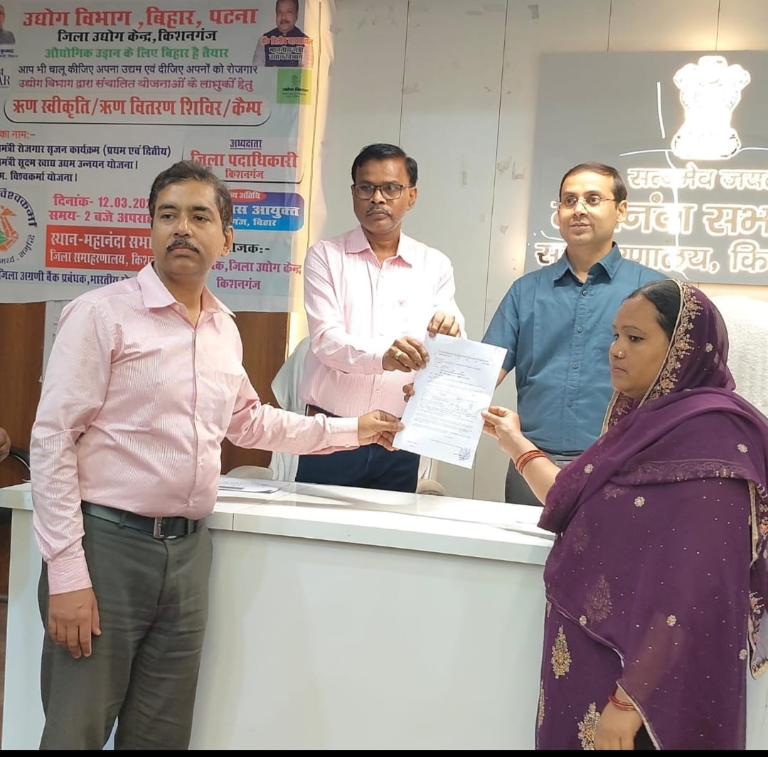 किशनगंज, बिहार -कार्यक्रम में महाप्रबंधक जिला उद्योग केंद्र पदाधिकारी अनिल कुमार एवं अन्य बैंककर्मी और योजना के लाभार्थी उपस्थित रहे-नजरिया न्यूज