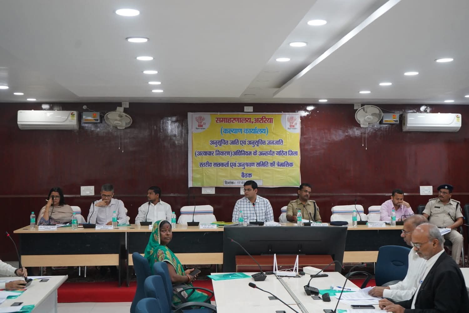 बैठक में माननीय विधायक रानीगंज अविनाश मंगलम, उप विकास आयुक्त अररिया रोजी कुमारी, अपर समाहर्ता अररिया अनिल कुमार झा, अनुमंडल पदाधिकारी, पुलिस उपाधीक्षक सहित अन्य संबंधित पदाधिकारी एवं सदस्यगण उपस्थित रहे।बैठक के दौरान अधिनियम से संबंधित विभिन्न बिंदुओं की विस्तृत समीक्षा की गई। इससे पूर्व जिला कल्याण पदाधिकारी -सह- सदस्य सचिव द्वारा पूर्व बैठक की कार्यवाही के अनुपालन से सभी सदस्यों को अवगत कराया गया। जिला कल्याण पदाधिकारी द्वारा बताया गया कि जिले में कुल 01 करोड़ रुपये की राशि अनुसूचित जाति एवं अनुसूचित जनजाति अत्याचार निवारण अधिनियम के अंतर्गत मुआवजा हेतु प्राप्त हुए हैं, जिसमें से 179 लाभुकों के बीच 99,21,176 रुपये का भुगतान किया जा चुका है।साथ ही बताया गया कि अधिनियम के अंतर्गत माननीय न्यायालय में आरोप पत्र समर्पण हेतु कुल 07 मामले लंबित हैं। इसके उपरांत जिला पदाधिकारी की अध्यक्षता में मैनुअल स्कैवेंजर्स रोजगार निषेध एवं पुनर्वास अधिनियम, 2013 के तहत जिला स्तरीय सतर्कता एवं निगरानी समिति की बैठक भी आयोजित की गई। बैठक में नगर परिषद एवं नगर पंचायतों के कार्यपालक पदाधिकारियों द्वारा जानकारी दी गई कि वर्तमान में अररिया जिले में मैनुअल स्कैवेंजिंग नहीं है। नगर परिषद, अररिया एवं जोगबनी के कार्यपालक पदाधिकारियों ने बताया कि सफाई कार्य आधुनिक उपकरणों के माध्यम से कराया जा रहा है तथा सफाई कर्मियों को आवश्यक सुरक्षा उपकरण उपलब्ध कराए गए हैं।जिला पदाधिकारी द्वारा सभी संबंधित अधिकारियों को निर्देश दिया कि योजनाओं का प्रभावी क्रियान्वयन सुनिश्चित करें तथा लाभुकों को समय पर सभी सुविधाएं उपलब्ध कराई जाएं। बैठक में सभी विभागों के पदाधिकारी एवं अन्य सदस्यगण उपस्थित रहे।