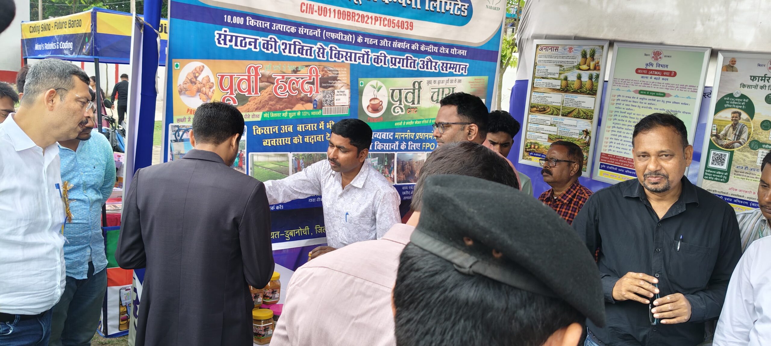 बिहार दिवस के उपलक्ष्य में आयोजित कार्यक्रम के दौरान लगाए गए विभिन्न विभागीय स्टॉलों के निरीक्षण के क्रम में जिला पदाधिकारी विशाल राज द्वारा कृषि विभाग के स्टॉल का अवलोकन किया गया। स्टॉल में ठाकुरगंज प्रखंड अंतर्गत चपाती गांव में उत्पादित विभिन्न प्रकार की सब्जियों का आकर्षक प्रदर्शन किया गया था। इसके साथ ही इन सब्जियों के उत्पादन में उपयोग होने वाले जैविक खाद एवं तकनीकों का भी प्रदर्शन किया गया, जिनमें वर्मी कम्पोस्ट, सुपर कम्पोस्ट के साथ-साथ बोतलों में बायो डीकंपोज़र, जीवामृत एवं बीजामृत आदि शामिल थे।