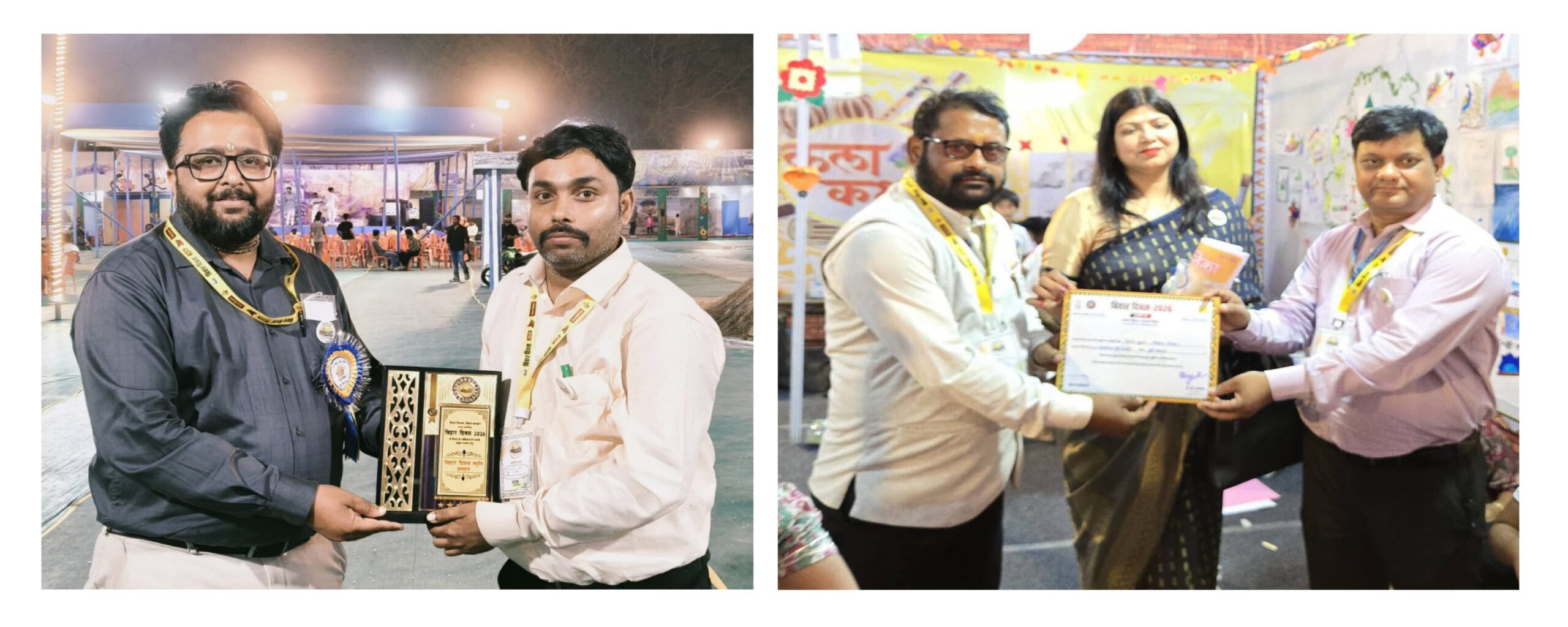 नजरिया न्यूज़, पटना। बिहार दिवस 2026 के अवसर पर गाँधी मैदान, पटना में आयोजित भव्य कार्यक्रम के सफल आयोजन में महत्वपूर्ण योगदान देने वाले शिक्षकों को सम्मानित किया गया। इसी क्रम में पूर्वी चंपारण जिले के दो शिक्षक मृत्युंजय कुमार एवं विनोद कुमार को उनके उत्कृष्ट कार्यों के लिए प्रशस्ति-पत्र एवं मोमेंटो प्रदान किया गया।