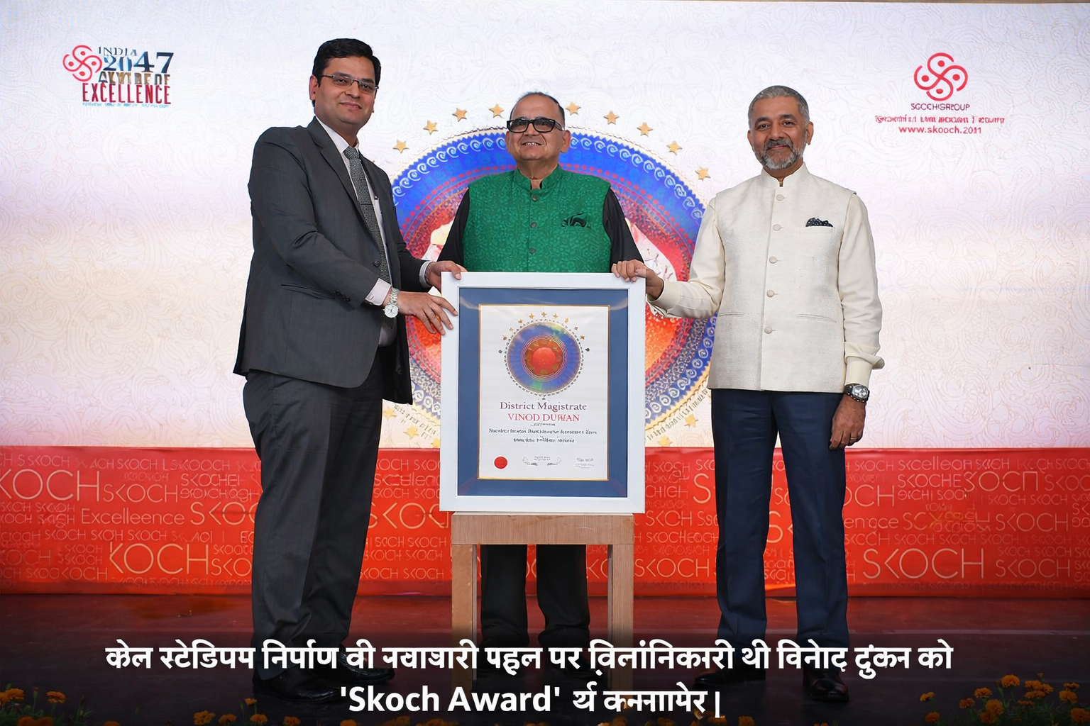 बिहार के गया जिले में मनरेगा के माध्यम से खेल स्टेडियम निर्माण की अभिनव एवं सराहनीय पहल के लिए तत्कालीन उप विकास आयुक्त, गया एवं वर्तमान जिलाधिकारी, अररिया श्री विनोद दूहन को प्रतिष्ठित ‘Skoch Award’ से नई दिल्ली में आयोजित एक भव्य समारोह में सम्मानित किया गया है। यह पहल उनके गया जिले में पदस्थापन के दौरान की गई थी, जिसे अब राष्ट्रीय स्तर पर व्यापक सराहना मिल रही है।