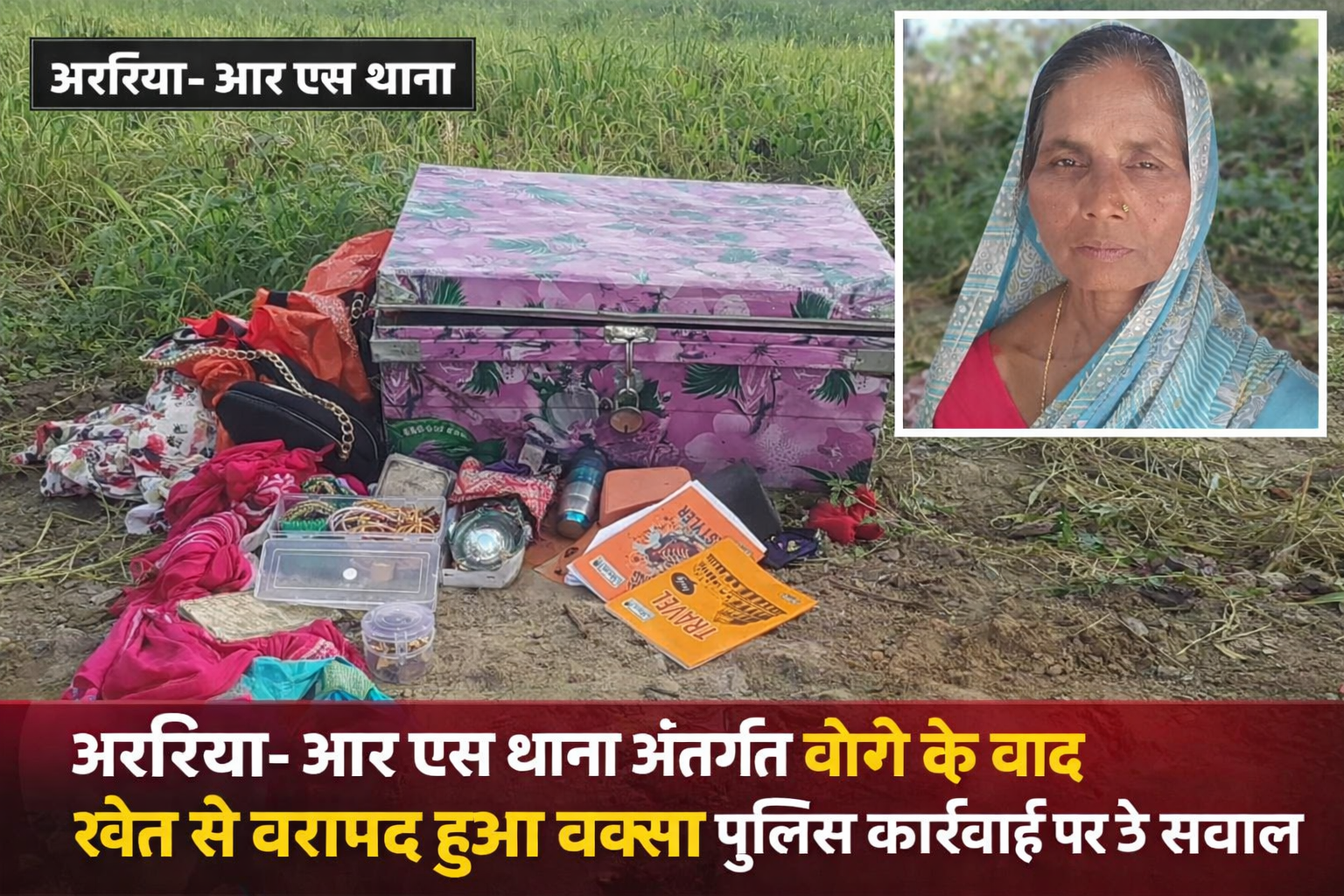 नजरिया न्यूज़, आर एस अररिया। आर एस थाना क्षेत्र के केडिया पट्टी वार्ड नंबर 4 में हुई चोरी की घटना ने अब नया मोड़ ले लिया है। चोरी के बाद गायब हुआ बक्सा घर के सामने स्थित मकई के खेत से स्थानीय लोगों द्वारा खोजबीन के दौरान बरामद किया गया। इस बरामदगी के बाद भी पुलिस की सक्रियता पर सवाल खड़े हो रहे हैं।