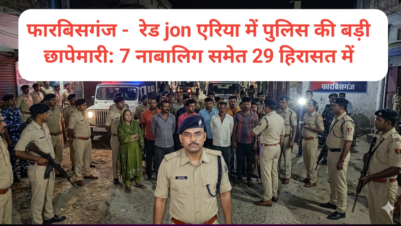 अररिया जिले के फारबिसगंज स्थित रेड लाइट एरिया में पुलिस ने शनिवार को बड़ी छापेमारी अभियान चलाते हुए कुल 36 लोगों को हिरासत में लिया। इनमें 23 महिलाएं और 13 पुरुष शामिल हैं। चौंकाने वाली बात यह है कि हिरासत में ली गई महिलाओं में 7 नाबालिग भी पाई गई हैं, जिससे मामले की गंभीरता और बढ़ गई है।