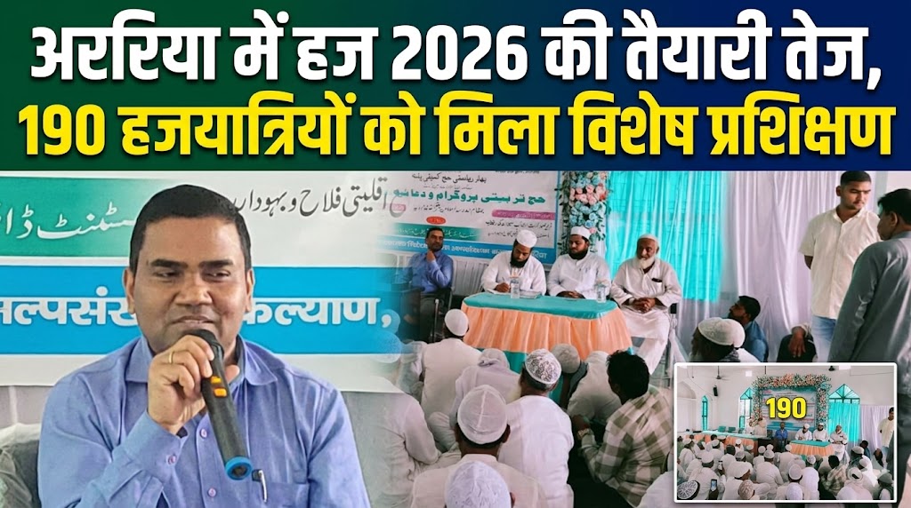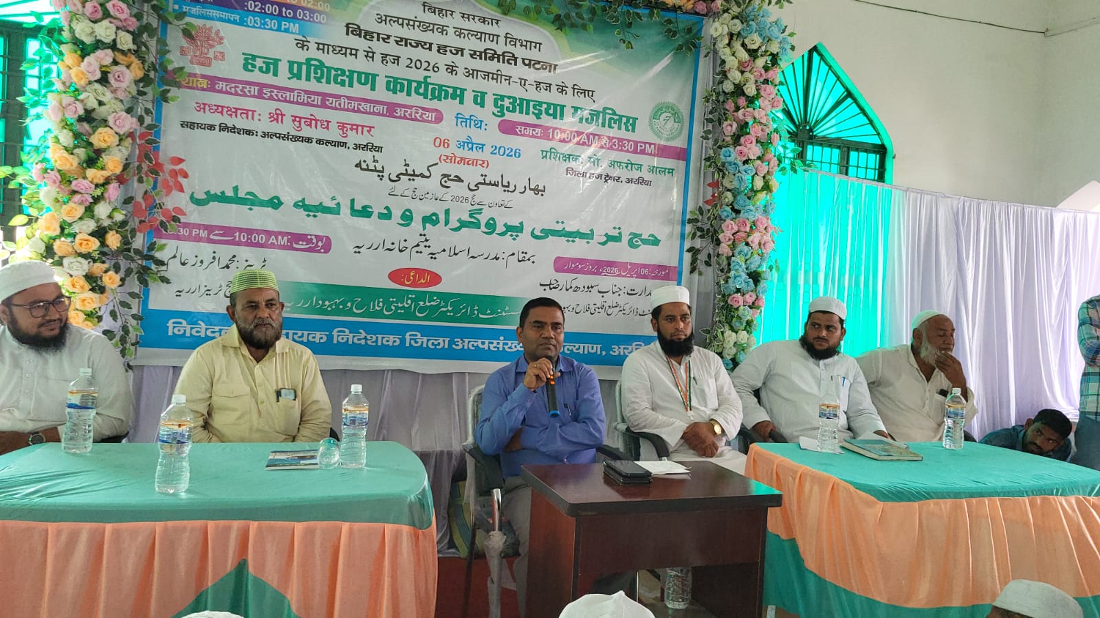 नजरिया न्यूज़, अररिया। अल्पसंख्यक कल्याण विभाग बिहार के तत्वाधान में बिहार राज्य हज कमेटी पटना के माध्यम से जारी निर्देशों के आलोक में हजयात्रा 2026 के लिए अररिया जिला के 190 हजयात्रियों के प्रशिक्षण एवं दुआईयां मजलिस कार्यक्रम का आयोजन जिला मुख्यालय स्थित मदरसा इस्लामिया यतीमखाना (लीड मदरसा) में किया गया।