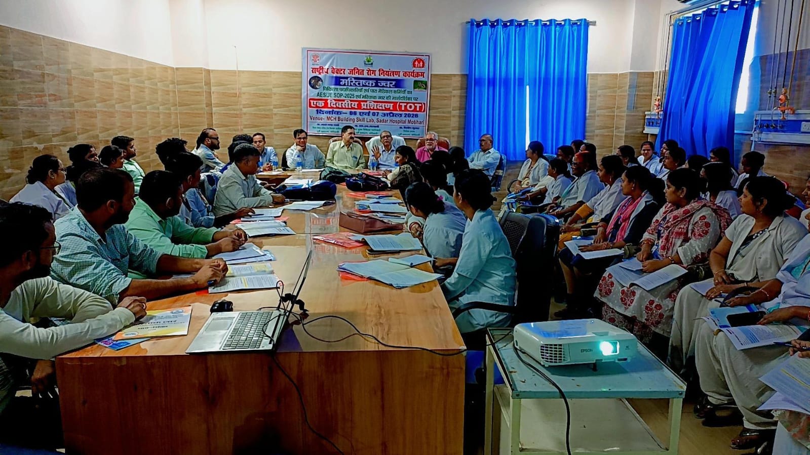 जिले में चमकी बुखार (एईएस) एवं मस्तिष्क ज्वर (जेई) से निपटने के लिए स्वास्थ्य विभाग पूरी तरह सक्रिय हो गया है। संभावित खतरों को देखते हुए जिला स्तर पर तैयारियां तेज कर दी गई हैं। इसी क्रम में गुरुवार को सदर अस्पताल स्थित जीएनएम भवन में जीएनएम, एएनएम, सीएचओ एवं स्टाफ नर्स सहित कुल 85 स्वास्थ्यकर्मियों को एकदिवसीय प्रशिक्षण दिया गया।