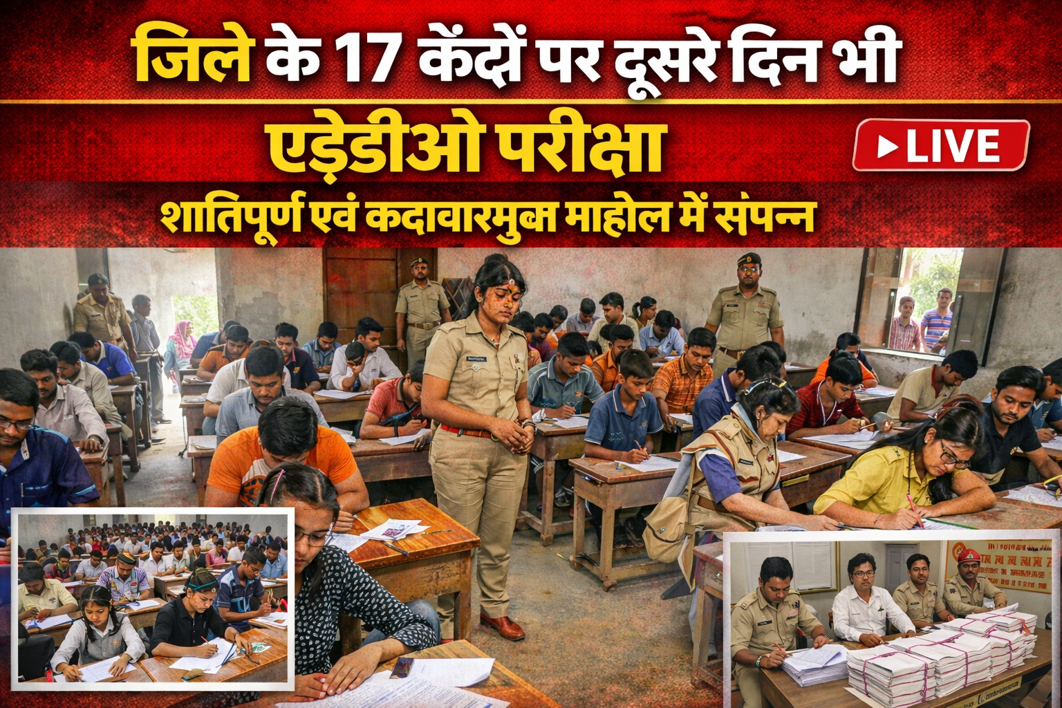 बिहार लोक सेवा आयोग, पटना द्वारा आयोजित सहायक शिक्षा विकास पदाधिकारी प्रतियोगिता परीक्षा (विज्ञापन संख्या-87/2025) जिले के 17 निर्धारित परीक्षा केंद्रों पर स्वच्छ, कदाचारमुक्त एवं शांतिपूर्ण वातावरण में संपन्न कराई गई है।