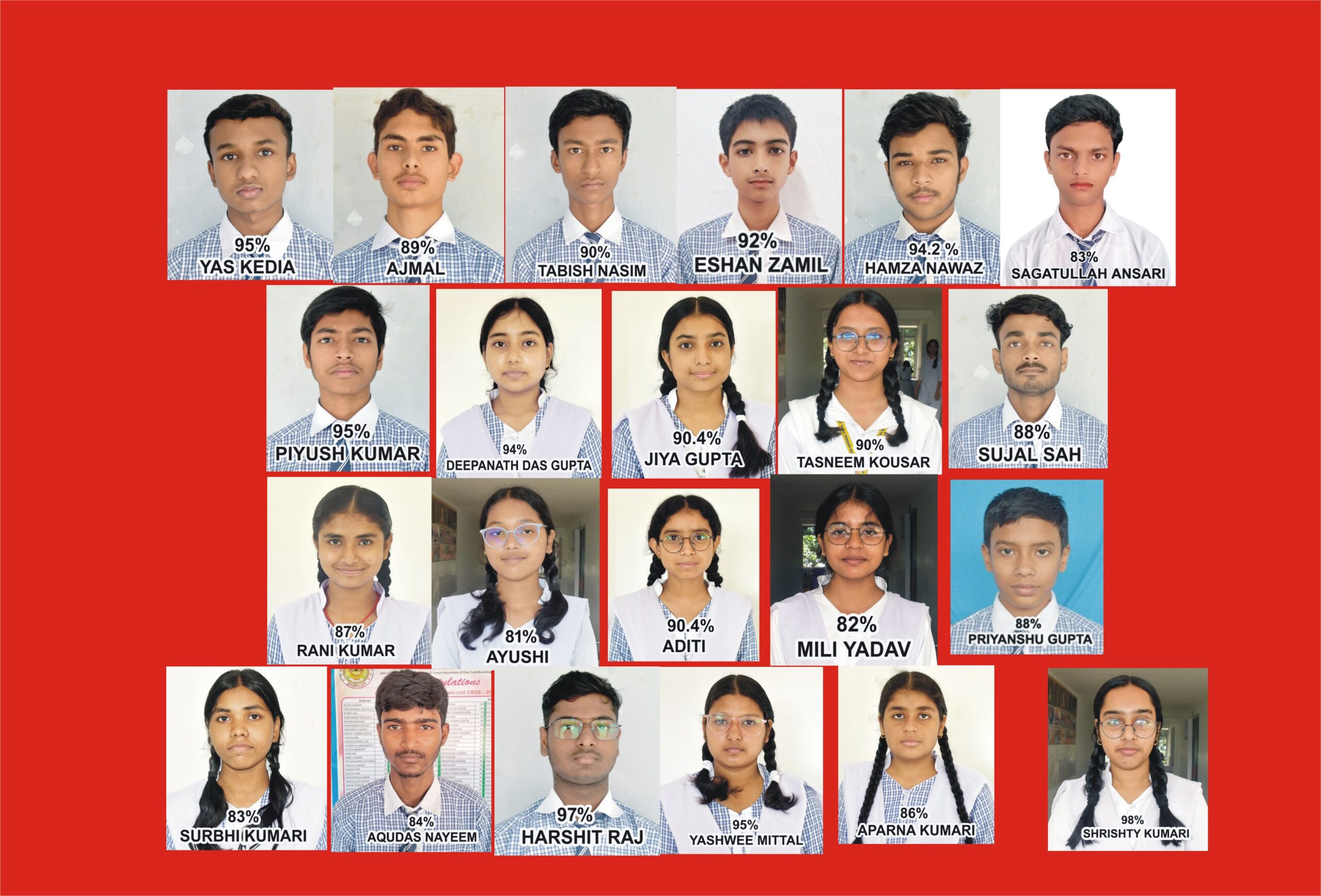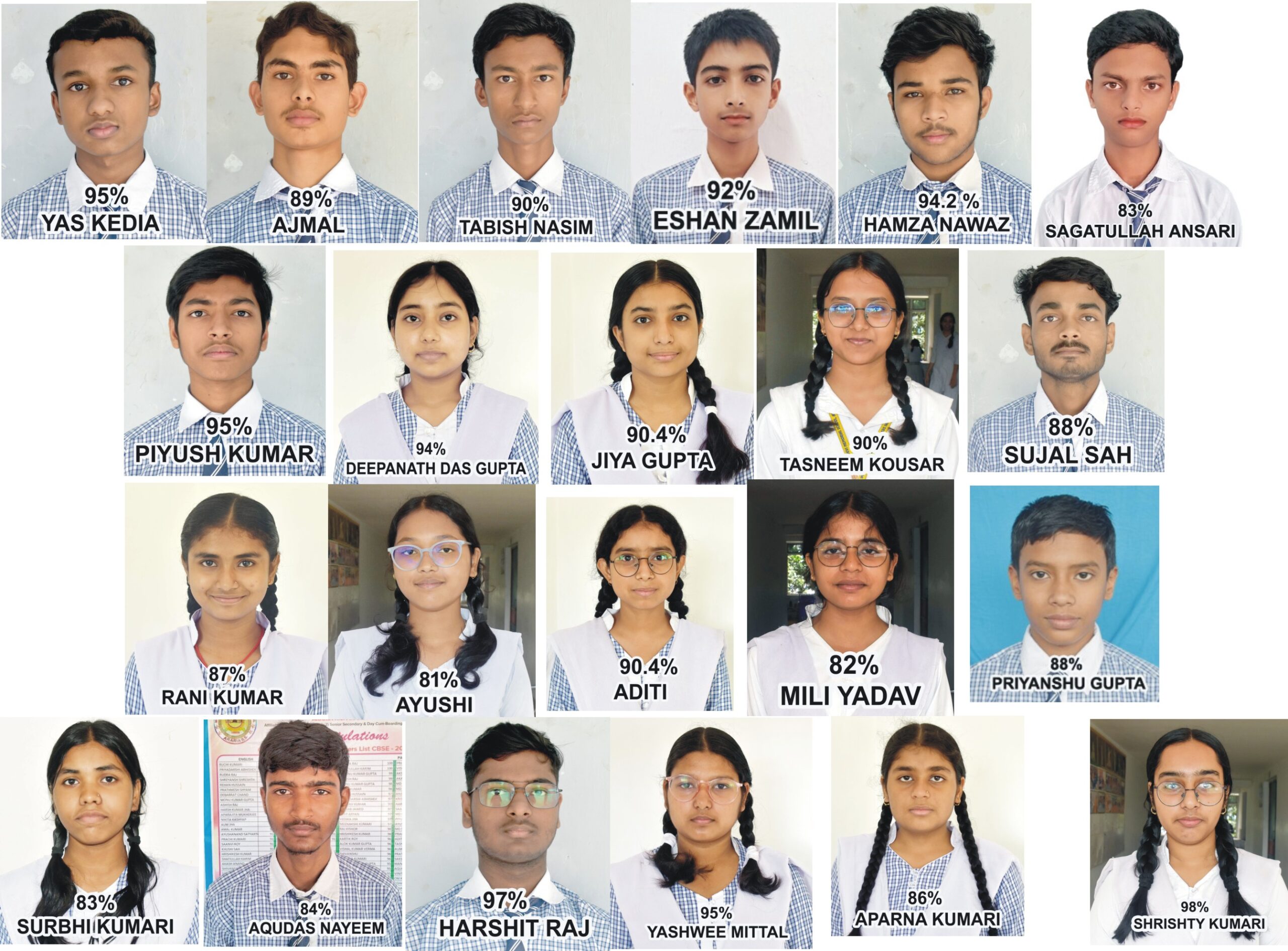 बुधवार को सीबीएसई के कक्षा दसवीं का परीक्षा परिणाम प्रकाशित हुआ। जिसमें मोहिनी देवी मेमोरियल स्कूल अररिया आर0एस0 के सभी छात्र छात्राओं ने सफलता प्राप्त किये। यह जानकारी मोहिनी देवी मेमोरियल स्कूल के निदेशक डॉक्टर संजय प्रधान एवं प्राचार्य डॉ पाराशर त्यागी ने संयुक्त रूप से पत्रकारों को बताया है। विद्यालय के निदेशक डॉक्टर संजय प्रधान एवं प्राचार्य डॉ पाराशर त्यागी ने यह भी बताया कि बच्चों के द्वारा शत प्रतिशत रिजल्ट का पिछला इतिहास एक बार पुनः दोहराया गया, जो काबिलेतारिफ है। इससे संपूर्ण विद्यालय परिवार में खुशी व्याप्त है। बताया गया कि विद्यालय की टॉपर सृष्टि कुमारी रही हैं, जिसने 98% अंक लाकर विद्यालय का नाम रोशन किया है। इसके बाद हर्षित राज ने 97 अंक लाकर विद्यालय में दूसरा स्थान प्राप्त किया। यश केडिया 95 ,पीयूष कुमार 95 ,यशवी मित्तल 95 इसके अलावा हमजा 94, दीपन्निता दास गुप्ता 94, शिल्पी 93, एहसान जमील 92, जिया कुमारी 90, अदिति 90, तस्लीम कौसर 90, ताबीज नसीम 90 व तासिब नसीम को 90 अंक प्राप्त किया है।