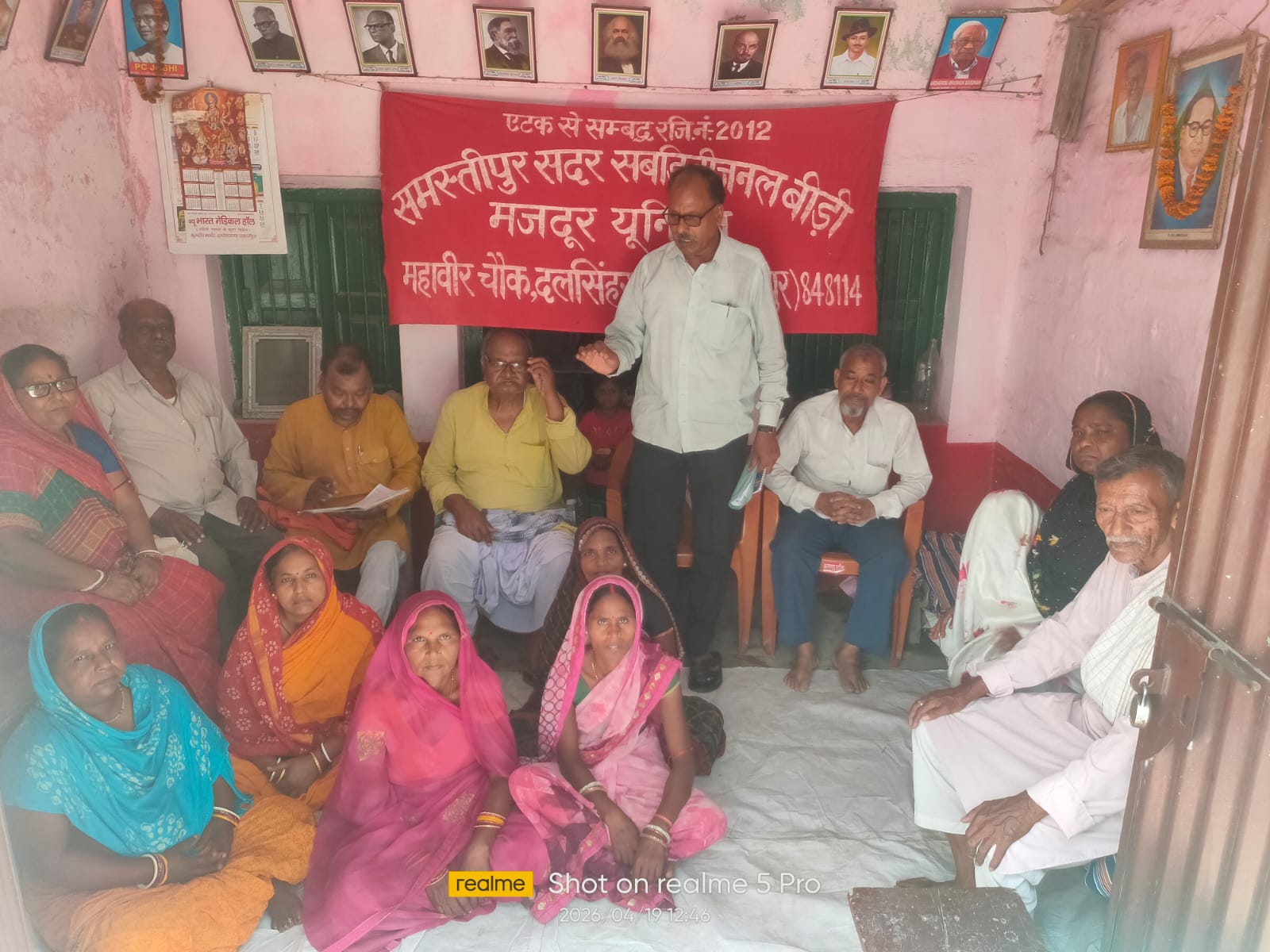 साथ ही बैठक में जनगणना 2027 पर भी चर्चा हुई तथा यूनियन ने अपने कार्यकर्ताओं से कहा कि 17 अप्रैल 2026 से आगामी 1 मई 2026 तक स्व -गणना (सेल्फ एनमेराशन ) पोर्टल की व्यवस्था सरकार द्वारा की गई है। जिसका लाभ उठानें का निर्णय लिया गया। बैठक में बीड़ी श्रमिकों को नया बीड़ी परिचय पत्र बनाने हेतु जिला स्तरीय टास्क फोर्स कमिटी के गठन करने में विलम्वता पर खेद व्यक्त करते हुए श्रम कल्याण संगठन भारत सरकार से मांग की गई की टास्क फोर्स कमिटी का गठन कर बीड़ी श्रमिकों को शीघ्र बीड़ी परिचय पत्र दिया जाए। बैठक में आगामी 1 मई मजदूर दिवस धूमधाम से मनाने का निर्णय लिया गया, आल इंडिया बीड़ी सिगार टुबैको वर्क्स फेडरेशन का राष्ट्रीय सम्मेलन दलसिंहसराय में आगामी 22 से 24 अगस्त 2026 को होगी इसकी तैयारी में जुटने का निर्णय लिया गया। मौके पर बैठक को विनोद कुमार समीर,महेश्वर राम,जगदेव दास, मजहर आलम,कारो देवी,सुदामा देवी,विष्णुदेव दास,उस्मान अंसारी, शंकर राम, पनमा देवी, मंजू देवी, सायरा बानो, बानो खातून, खखनु पंडित , मोहम्मद असगर तिरपीत राय आदि ने संबोधित किया।