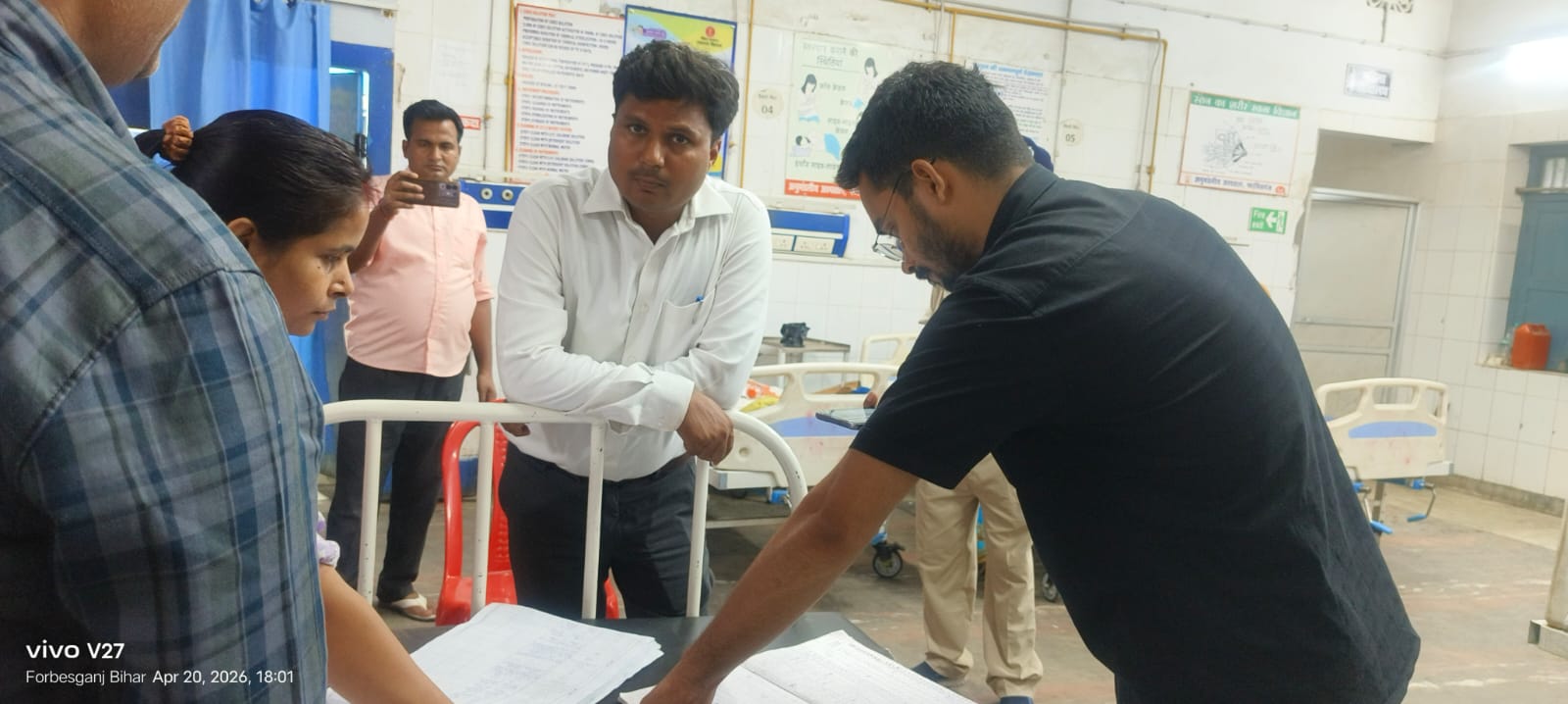 जिले में स्वास्थ्य सेवाओं को बेहतर और जवाबदेह बनाने के उद्देश्य से जिला पदाधिकारी अररिया श्री विनोद दूहन के निर्देश पर सरकारी अस्पतालों की व्यापक जांच की जा रही है। इस अभियान के तहत विभिन्न स्वास्थ्य संस्थानों का औचक निरीक्षण किया जा रहा है, ताकि आम जनता को मिलने वाली सुविधाओं की वास्तविक स्थिति का आकलन किया जा सके।