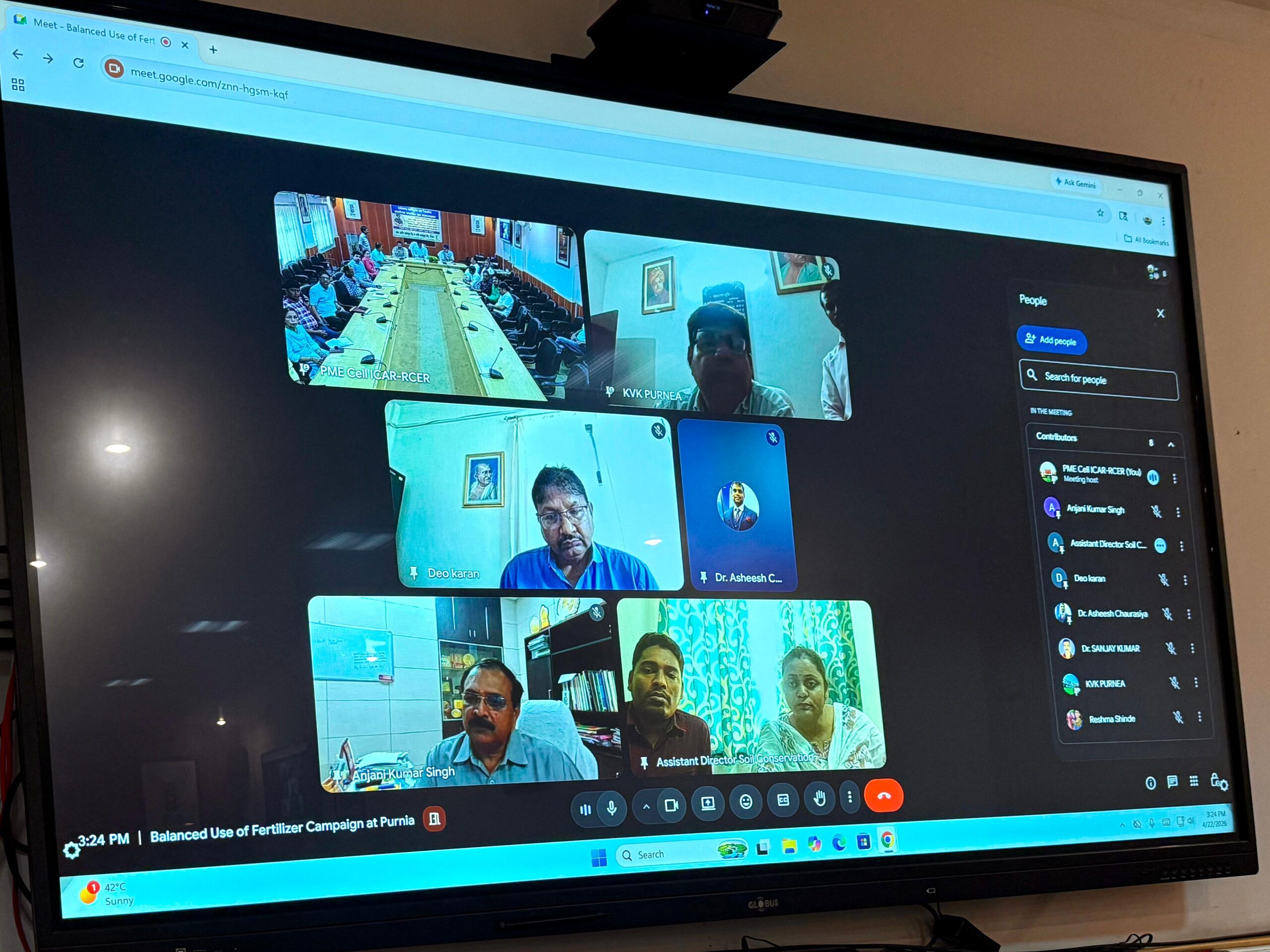 पूर्णिया जिले में संतुलित उर्वरक उपयोग को बढ़ावा देने के उद्देश्य से 22 अप्रैल, 2026 को भारतीय कृषि अनुसंधान परिषद का पूर्वी अनुसंधान परिसर, पटना में हाइब्रिड माध्यम से संयुक्त समन्वय टीम की बैठक आयोजित की गई। इस बैठक का मुख्य उद्देश्य पूर्णिया जिले में डीएपी उर्वरक के अत्यधिक एवं असंतुलित उपयोग की समस्या पर था, जिसे देश के शीर्ष 100 डीएपी उपभोग करने वाले जिलों में शामिल किया गया है। बैठक की अध्यक्षता संस्थान के निदेशक डॉ. अनुप दास ने की तथा इसमें कृषि प्रौद्योगिकी अनुप्रयोग अनुसंधान संस्थान, पटना के निदेशक डॉ. अंजनी कुमार विशेष रूप से उपस्थित रहे। बैठक में कृषि विज्ञान केंद्र, पूर्णिया, जिला कृषि विभाग, तथा भोला पासवान शास्त्री कृषि महाविद्यालय, पूर्णिया से प्रतिभागियों ने भाग लिया।