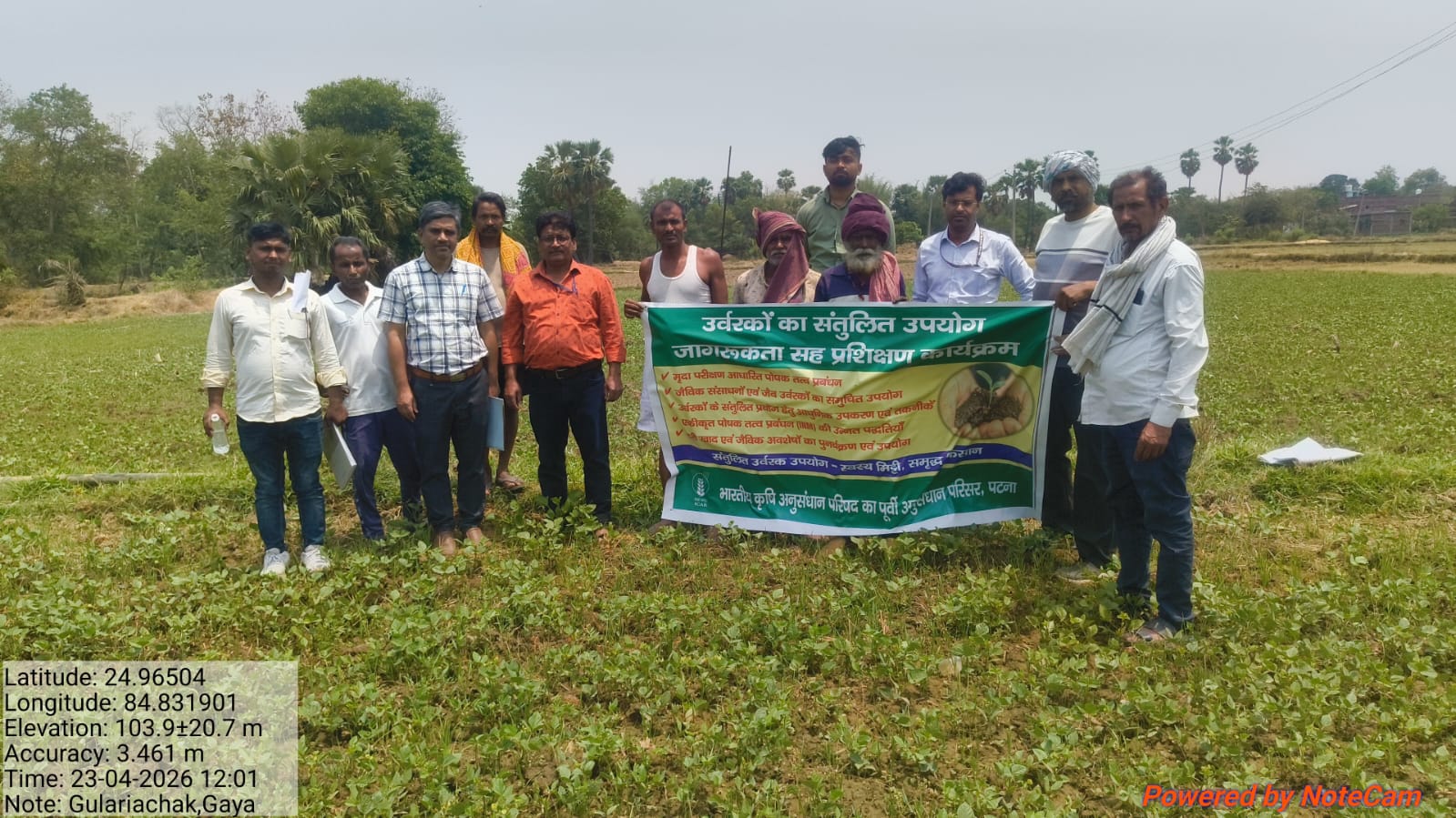 भारतीय कृषि अनुसंधान परिषद का पूर्वी अनुसंधान परिसर, पटना द्वारा 23 अप्रैल, 2026 को गया जिले के टेकारी प्रखंड अंतर्गत गुलेरियाचक गाँव में संतुलित उर्वरक उपयोग विषय पर एक जागरूकता कार्यक्रम का आयोजन किया गया।