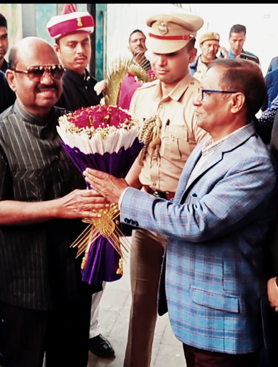 राज्यपाल डॉ. सीवी आनंद बोस को बुकें भेंटकर बिहार सरकार की तरफ से उनका स्वागत किया।