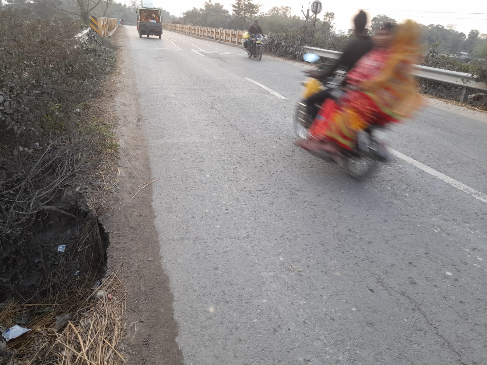 अररिया जिला सहित लंबी दूरी की यात्रा राष्ट्रीय राजमार्ग 327ई से तय करते हैं। खासकर रात्रि में पटना जाने वाली बस , सिलीगुड़ी जाने वाली बस सहित बड़े-बड़े ट्रकों की भी आवाजाही होती है। सड़क में गड्ढा के कारण लोगों को आवागमन मे न केवल परेशानी उठाना पड़ रहा हैं , बल्कि हमेशा दुर्घटना का भय सताते रहता है।