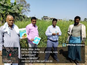 नजरिया न्यूज बयूरो पटना। पटना के सिमरा तथा चिरौरा ग्राम में दिनांक 29.02.2024 को भारतीय कृषि अनुसंधान परिषद् के पूर्वी अनुसंधान परिसर, पटना द्वारा सरसों की फसल पर चल रहे अग्रिम पंक्ति प्रत्यक्षण (एफएलडी) के अंतर्गत फसल को रोग एवं कीट से सुरक्षा प्रदान करने के लिए संस्थान के वैज्ञानिक डा. संजीव कुमार एवं डा. अभिषेक कुमार ने किसानो के खेत का भ्रमण किया तथा आवश्यक कृषि आदानों का वितरण किया | इस कार्यक्रम के तहत कीटनाशक, खरपतवार नाशक, फफूंद नाशक इत्यादि जैसे कृषि आदानों के साथ साथ डीजल का वितरण भी किया गया।
