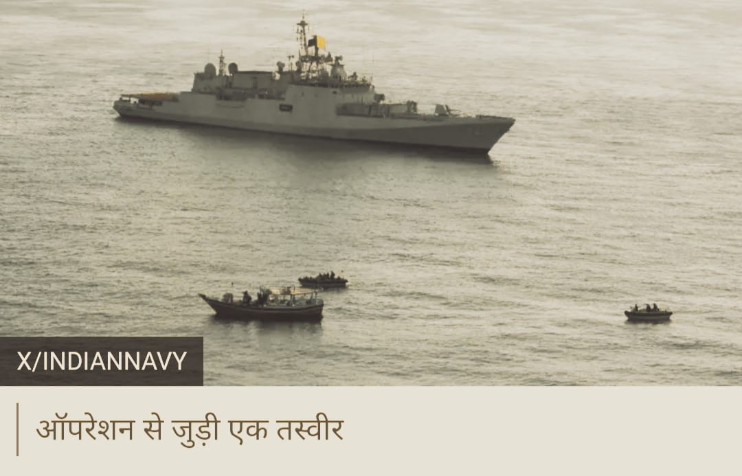 भारतीय नौसेना के मुताबिक़, सर्विलांस मिशन पर लगे पी8आई एलआरएमआर एयरक्राफ़्ट से मिले इनपुट्स और नारकोटिक्स ब्यूरो की ओर से की गयी पुष्टि के आधार पर भारतीय नौसेना के युद्धपोत को संदिग्ध नाव की ओर भेजा गया