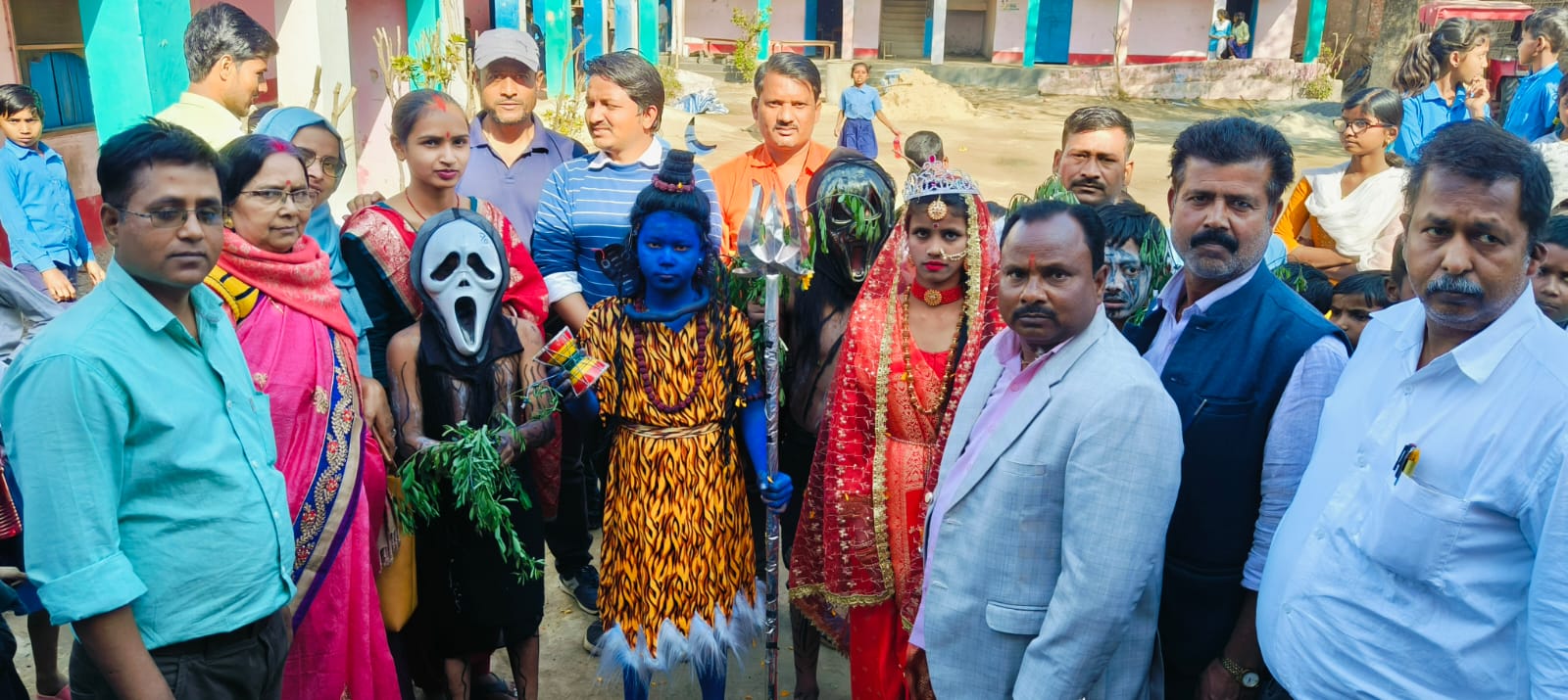 झांकी में भगवान शिव व माता पार्वती के विवाह उत्सव को प्रस्तुत किया गया ।झांकी में भगवान शिव का रूप में आदर्श कुमार,पार्वती के रूप में लक्ष्मी कुमारी,भूत -पिशाच के रूप में ओम कुमार, करण कुमार , आदर्श कुमार ने अपनी भूमिका निभाई। लोगों ने जमकर बच्चों द्वारा निकाली गई झांकी की प्रशंसा की है।मौके पर प्रधानाध्यापक अलख निरंजन, इंदू भूषण, पवन पासवान, रविशंकर, अजय कुमार, भवेश कुमार, अनिता , रानी, लुबना ,सुमन, जयंत, अमर, मनोज, राजेश आदि शिक्षक -शिक्षका मौजूद थे।