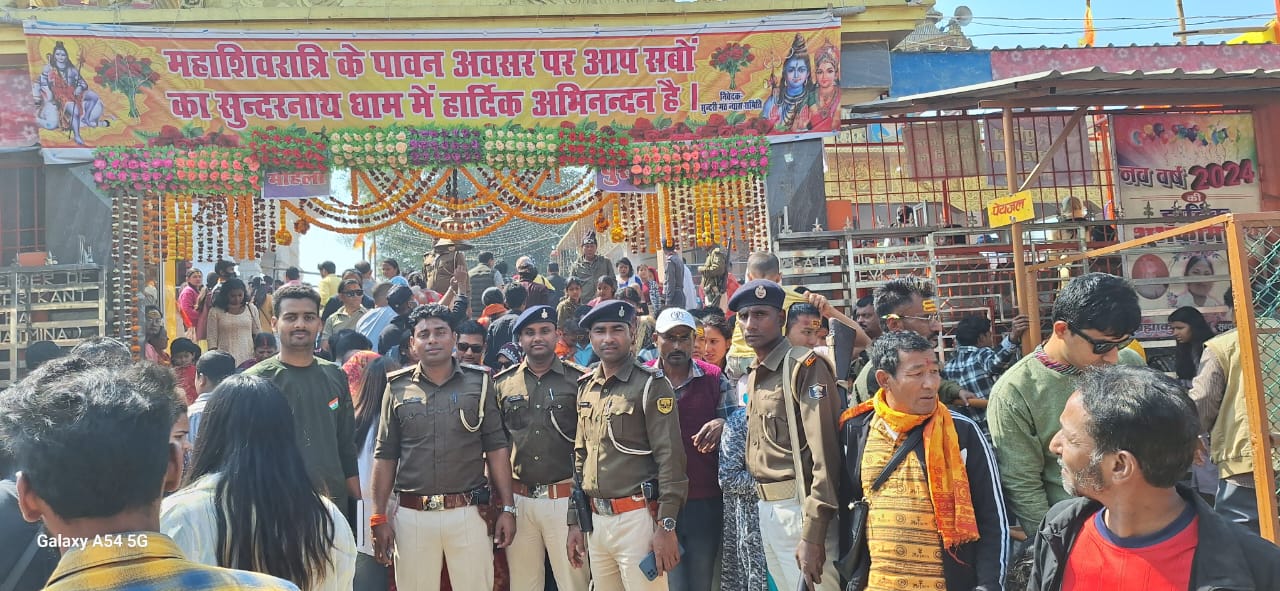 महाशिवरात्रि शिव विवाह के पावन अवसर पर शुक्रवार को प्रखंड के ऐतिहासिक धर्मस्थल सुन्दरनाथ धाम में शिव भक्तों का सैलाब उमड़ पड़ा। भारतीय मूल से अधिक नेपाल के श्रद्धालुओं ने जलाभिषेक किया। इस दौरान लोग हर-हर महादेव, जय बाबा सुन्दरनाथ धाम, बोल बम के जयकारे लगाते रहे। सुंदरी मठ न्यास समिति के प्रबंधन के अनुसार महंथ सिंघेश्वर गिरि ने प्रातः पूजा उपरांत सुबह पांच बजे श्रद्धालुओं के लिये मंदिरों का कपाट खोल दिया। तब से लगभग सूर्यास्त के समय तक श्रद्धालुओं ने जलाभिषेक-पूजा किया। मंदिर कमेटी के सचिव नरेंद्र प्रसाद सिंह, कोषाध्यक्ष प्रणव कुमार गुप्ता, सदस्य विजय केशरी, रामदेव सरदार, मनोज भगत, श्याम राम, रामप्रसाद शर्मा आदि ने बताया कि शुक्रवार को लगभग एक लाख से अधिक की संख्यां में लोगों ने जलाभिषेक किया। कमेटी के लोगों ने बताया कि साढ़े पांच सौ बच्चों का मुंडन संस्कार करवाया गया।