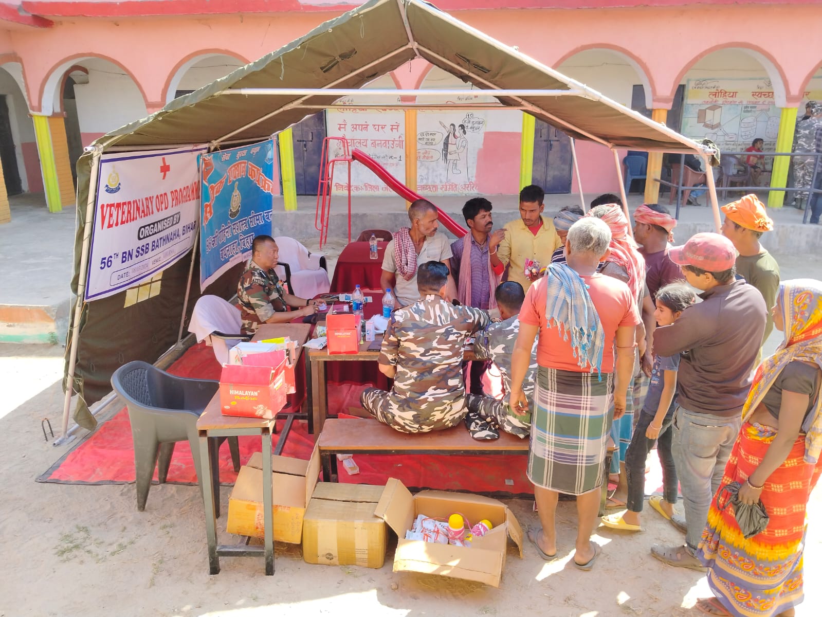56वीं बटालियन सशस्त्र सीमा बल बथनाहा के कमांडेंट श्री सुरेंद्र विक्रम के निर्देशन में मध्य विद्यालय, डुमरबन्ना, घूरना गांव में निःशुल्क मानव चिकित्सा शिविर एवं निःशुल्क पशु चिकित्सा शिविर लगाकर कल्याण कार्यक्रम किया गया।