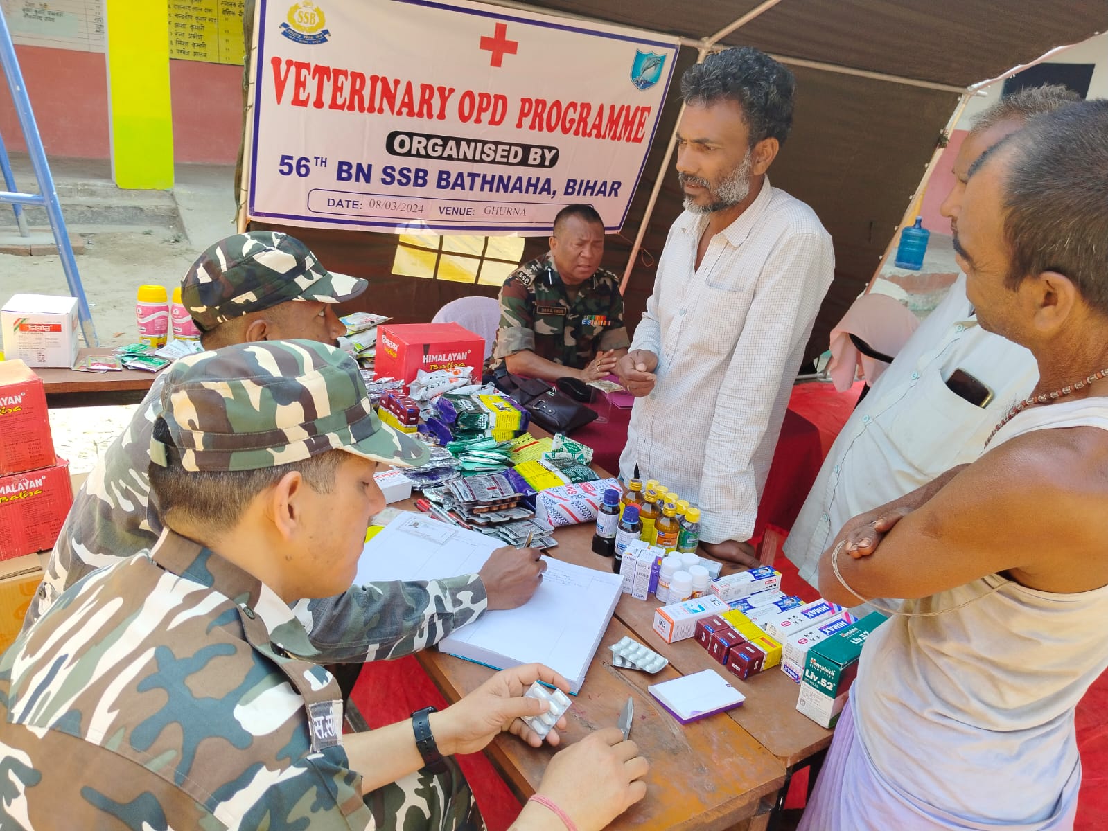 मानव चिकित्सा शिविर में 56वीं वाहिनी बथनाहा के वरिष्ठ चिकित्सा पदाधिकारी डॉक्टर एच. के. शिंदे द्वारा सीमावर्ती ग्रामीणों की निःशुल्क जांच की गई तथा उनके परामर्श के अनुसार 56वीं वाहिनी के चिकित्सा शाखा के मेडिकल स्टाफ द्वारा स्थानीय ग्रामीणों को मुफ्त दवाइयों का वितरण किया गया।