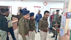 फोटो परिचय : घटना होने के बाद बैंक के अंदर जांच करते अररिया एसपी अशोक कुमार सिंह