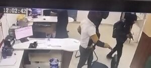फोटो परिचय : हथियार लहराते बैंक परिसर में अपराधी