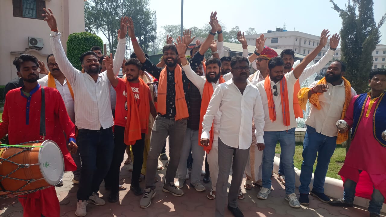 बताते चलें कि शनिवार रात्रि करीब नौ बजे मंत्री डॉ. दिलीप जायसवाल एमजीएम कॉलेज पहुंचे तो भाजपा जिलाध्यक्ष सुशांत गोप के नेतृत्व में पार्टी नेताओं द्वारा उनके स्वागत की तैयारी की गयी थी और उनके आते ही उत्साहित पार्टी नेताओं ने ढोल नगारे के साथ रंग-गुलाल उड़ाते हुए स्वागत किया। मंत्री डॉ. जायसवाल एमजीएम मेडिकल कॉलेज स्थित निज निवास पर रात्रि विश्राम किया।