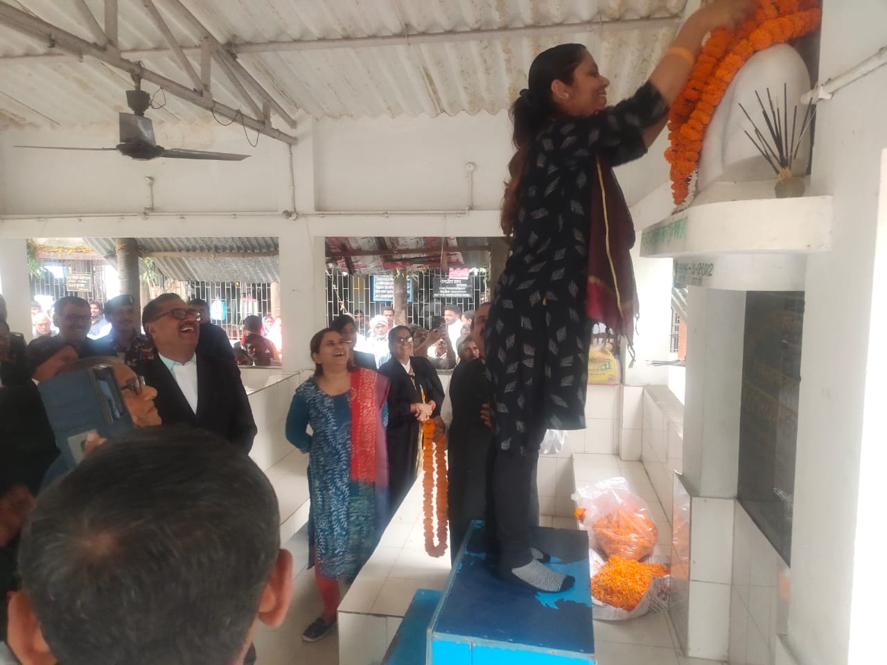 मौके पर एडीजे शशि कांत राय, एसीजेएम विवेक चंद्र वर्मा,अपर मुख्य न्यायिक दंडाधिकारी कविता कुमारी, एसडीजेएम अखिलेश प्रताप सिंह, मुंसिफ स्पर्श अग्रवाल, न्यायिक दंडाधिकारी निभा आनंद, एसडीओ प्रियंका कुमारी,अधिवक्ता संघ के अध्यक्ष बिनोद कुमार पोद्दार समीर, महासचिव प्रभात कुमार चौधरी, अधिवक्ता नवल किशोर सिंह, नागेंद्र नाथ चौधरी, शिवशंकर वर्मा,उग्र नारायण कमल, सुनील कुमार चौधरी, सुनील कुमार सिंह, संदीप कुमार सिन्हा, लोक अभियोजक मनेंद्र कुमार सहित अन्य अधिवक्ता आदि ने माल्यार्पण किया।कार्यक्रम की अध्यक्षता अधिवक्ता संघ के अध्यक्ष विनोद कुमार पोद्दार समीर ने किया।