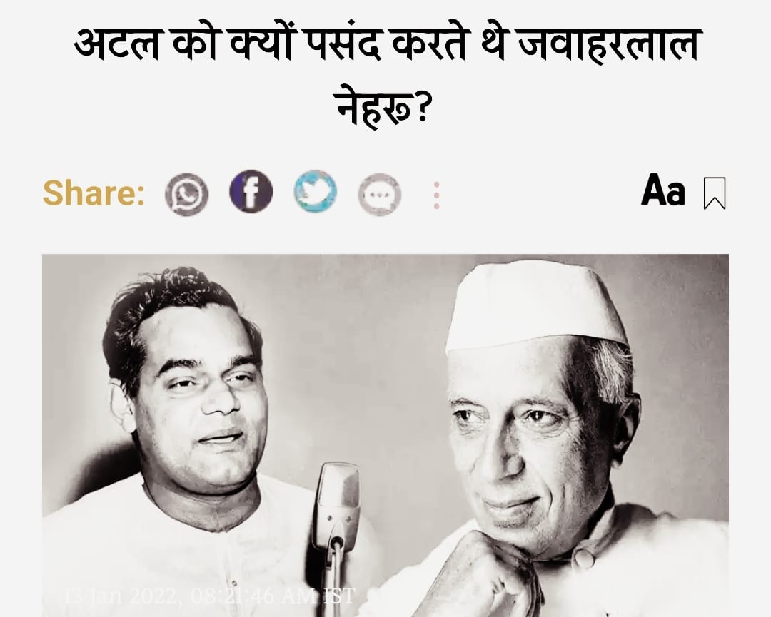=संसद में अटलजी के बारे में पंडित जवाहर लाल नेहरूजी ने कहा था- ‘मैं इस युवक में भारत का भविष्य देख रहा हूं’: नेहरू जी ने 1957में भविष्यवाणी की थी कि भविष्य में अटल जी प्रधानमंत्री बनेंगे